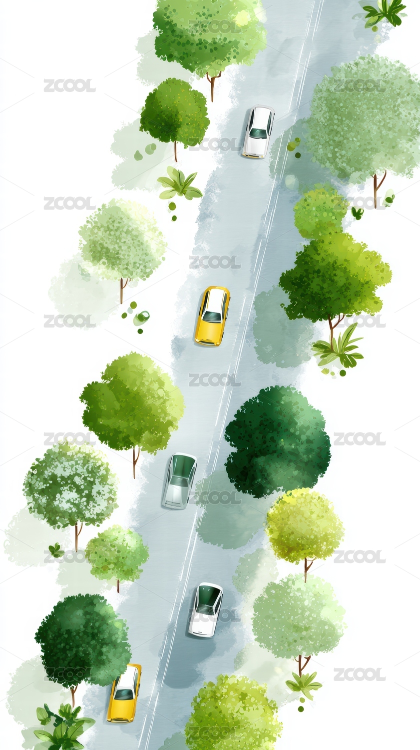 梧桐树,林荫道,汽车,春天,插画