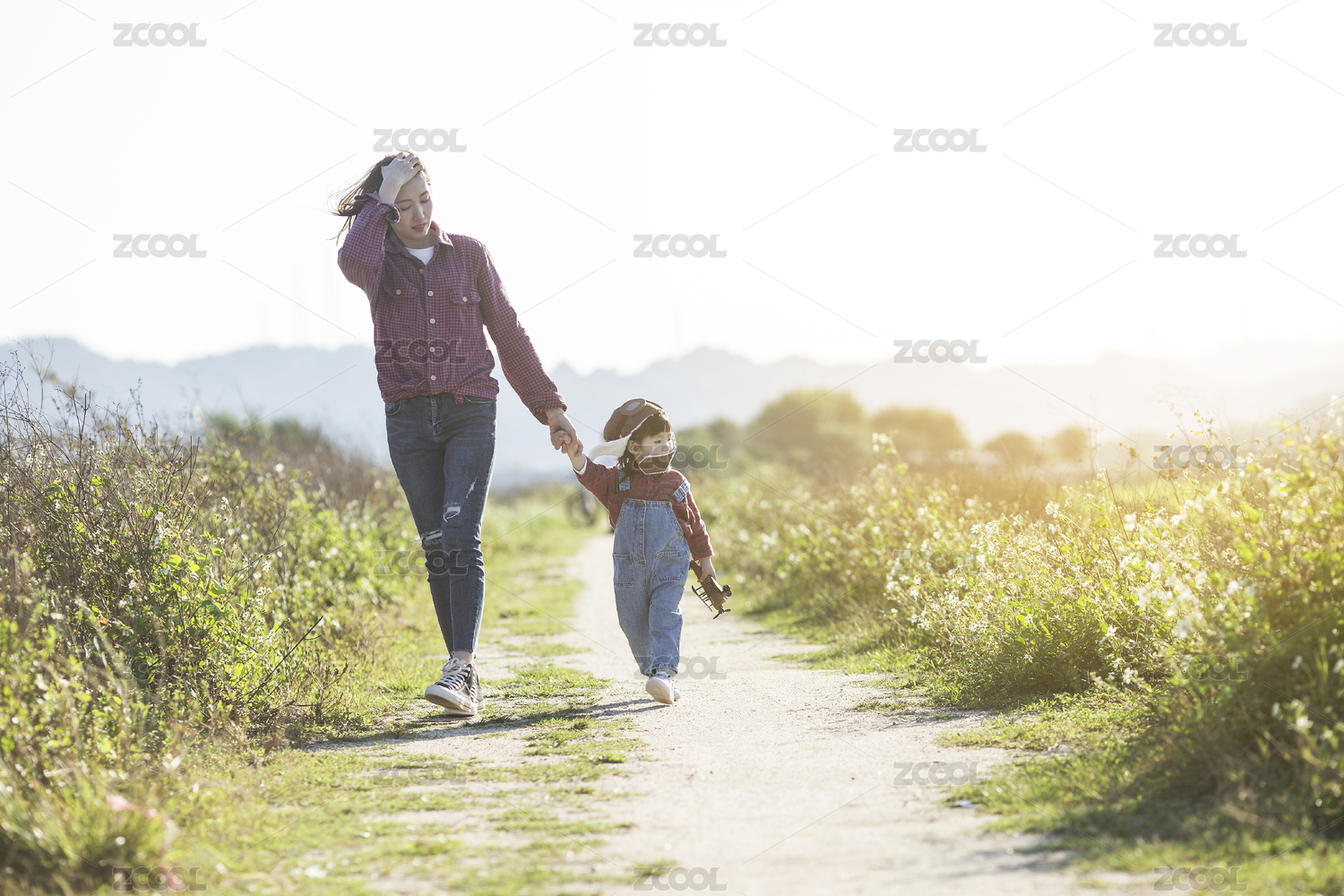 一位父亲带着女儿在田野玩耍,父亲节概念