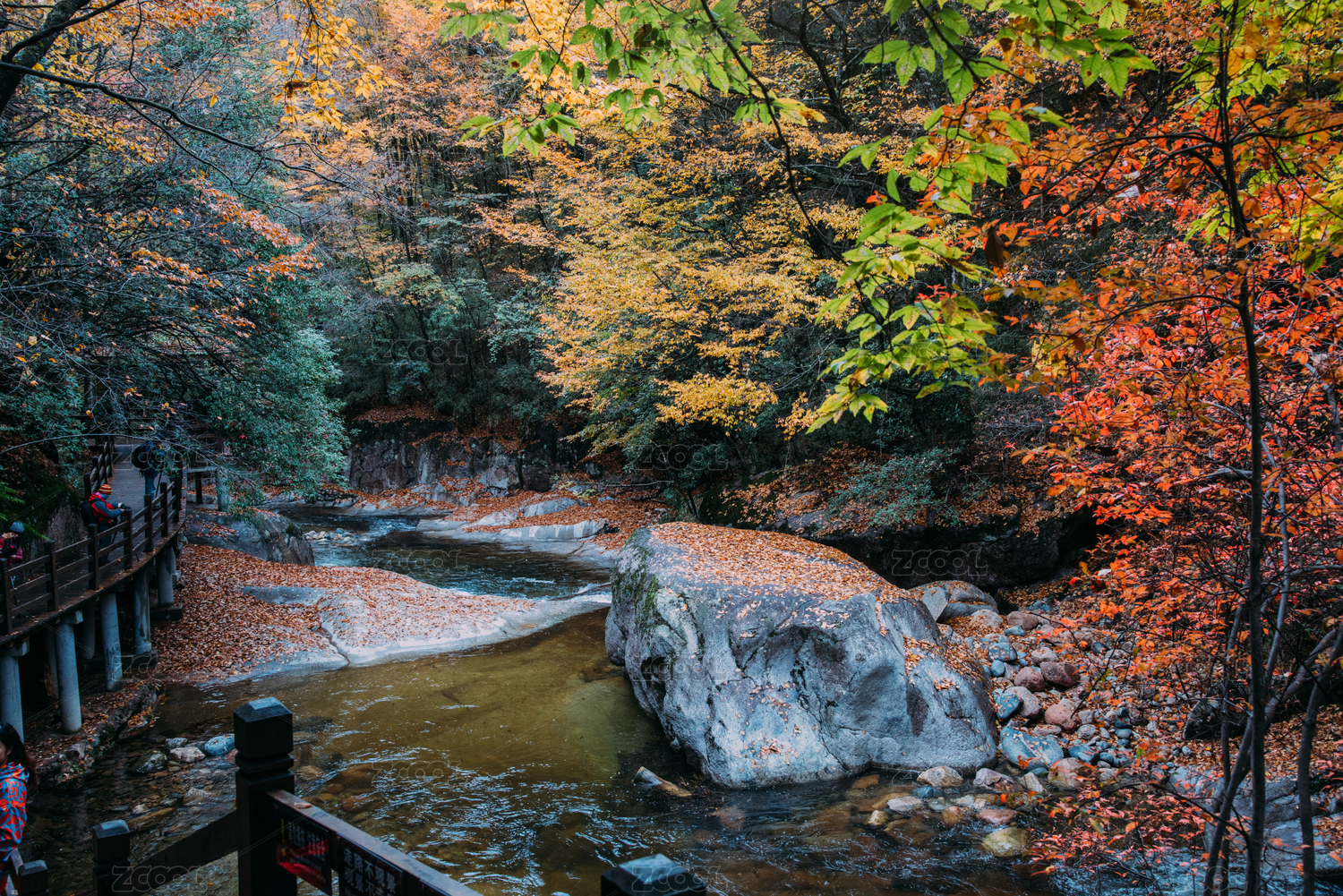 沈阳本溪老边沟 秋天枫树红叶溪流自然风光