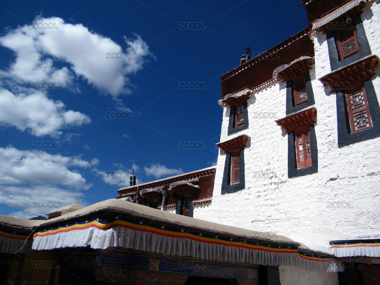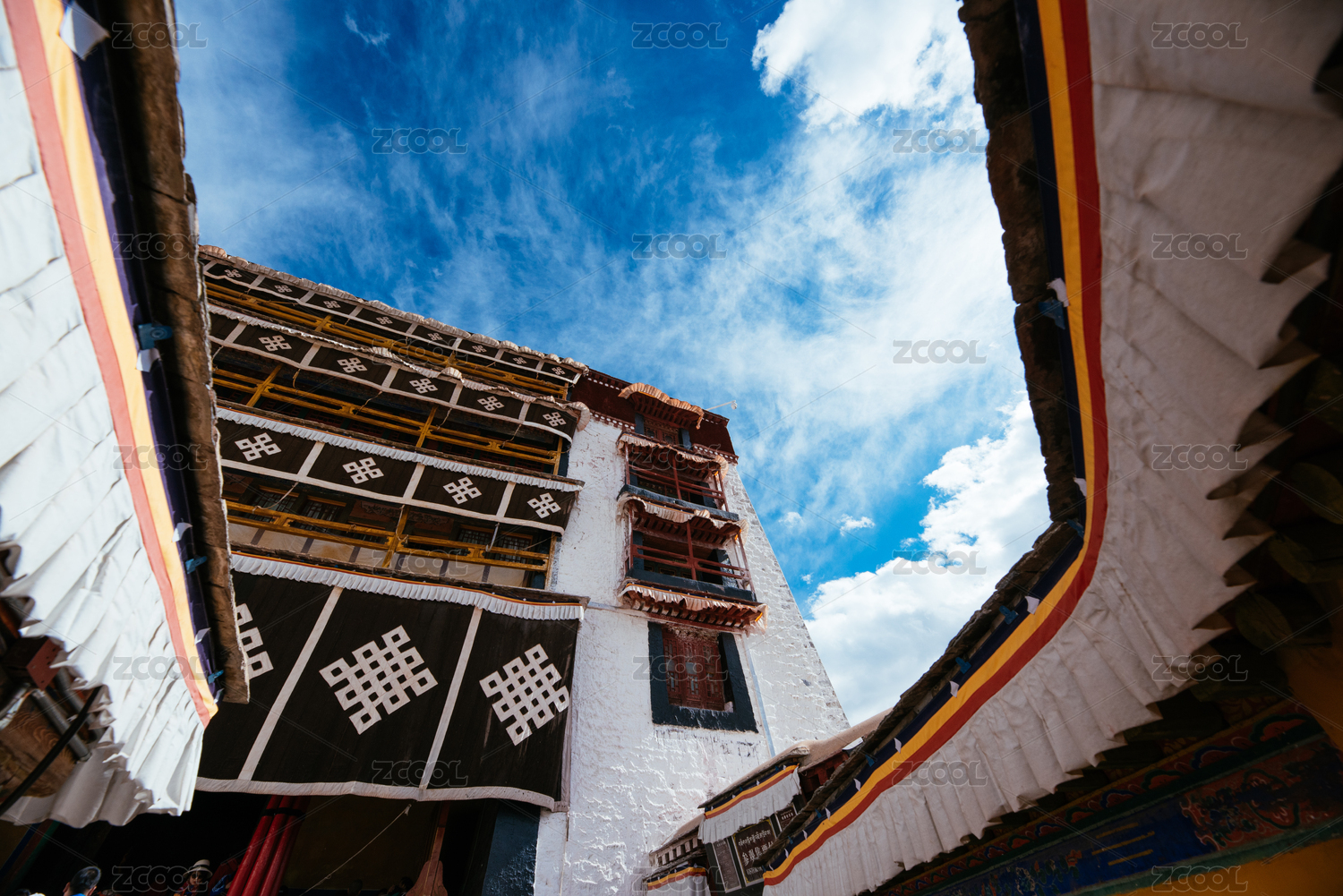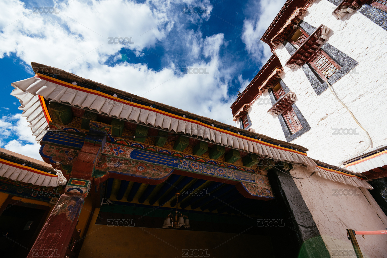 中国布达拉宫内景,红墙与藏族风格建筑