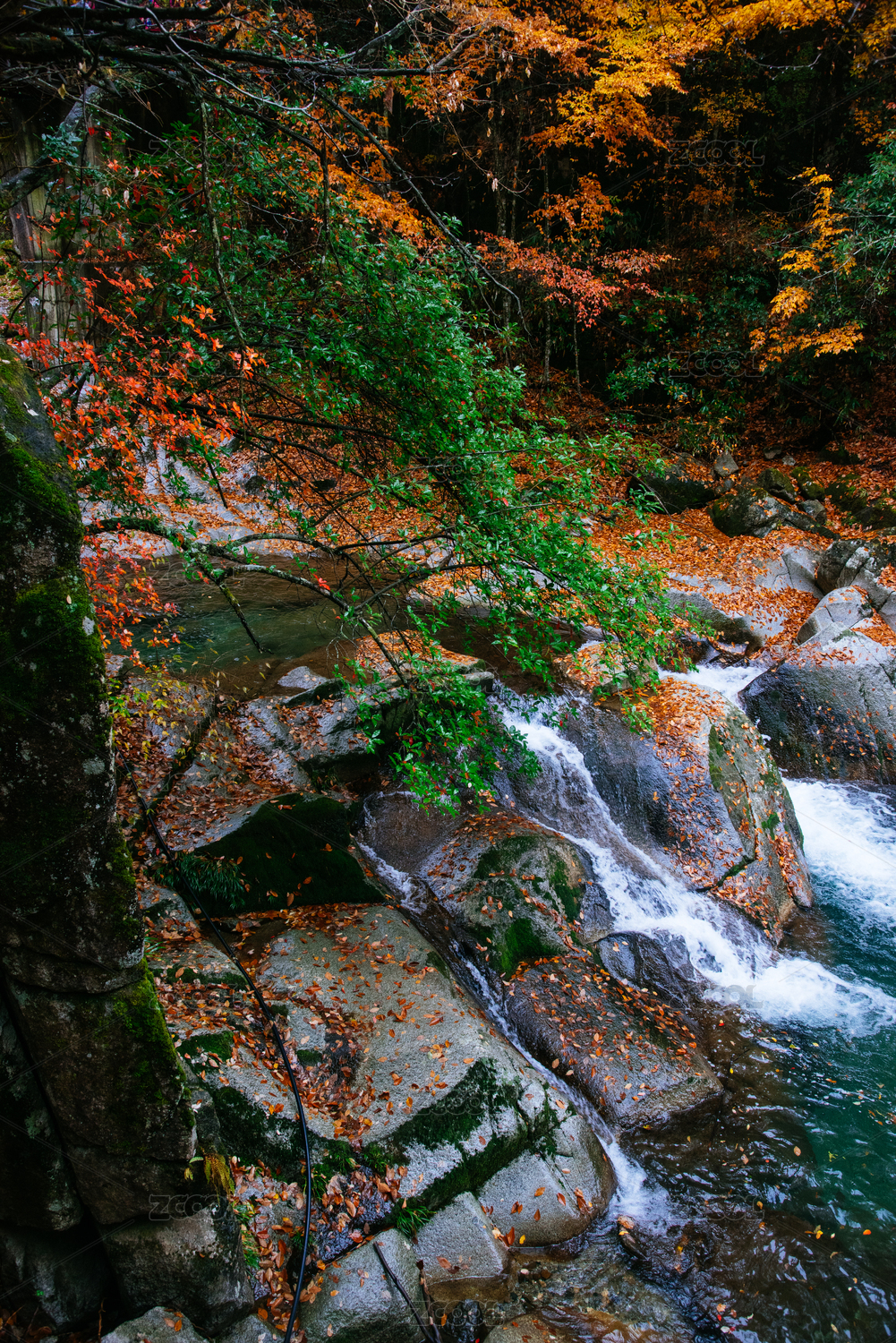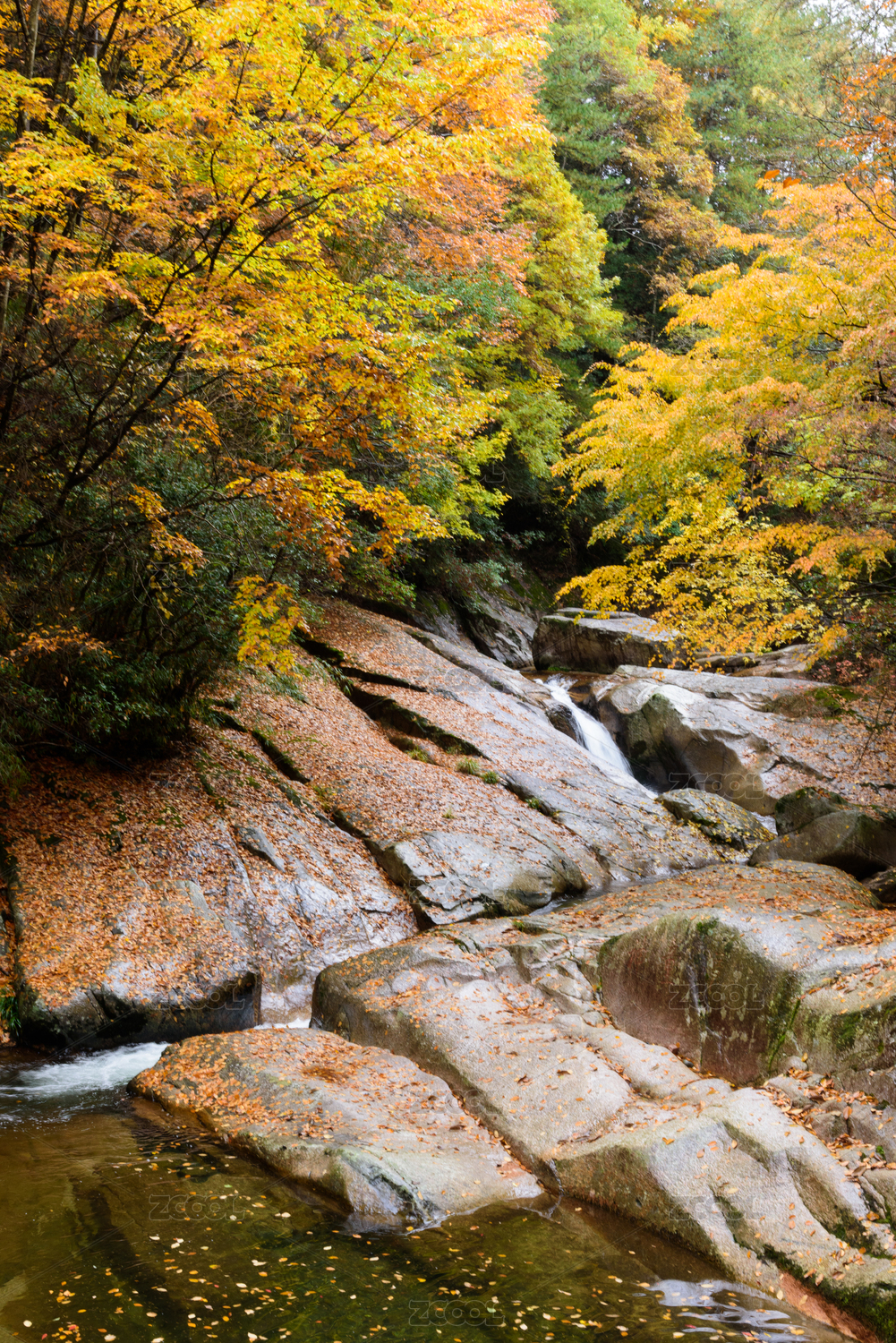 山涧美丽的红叶和落叶自然风光
