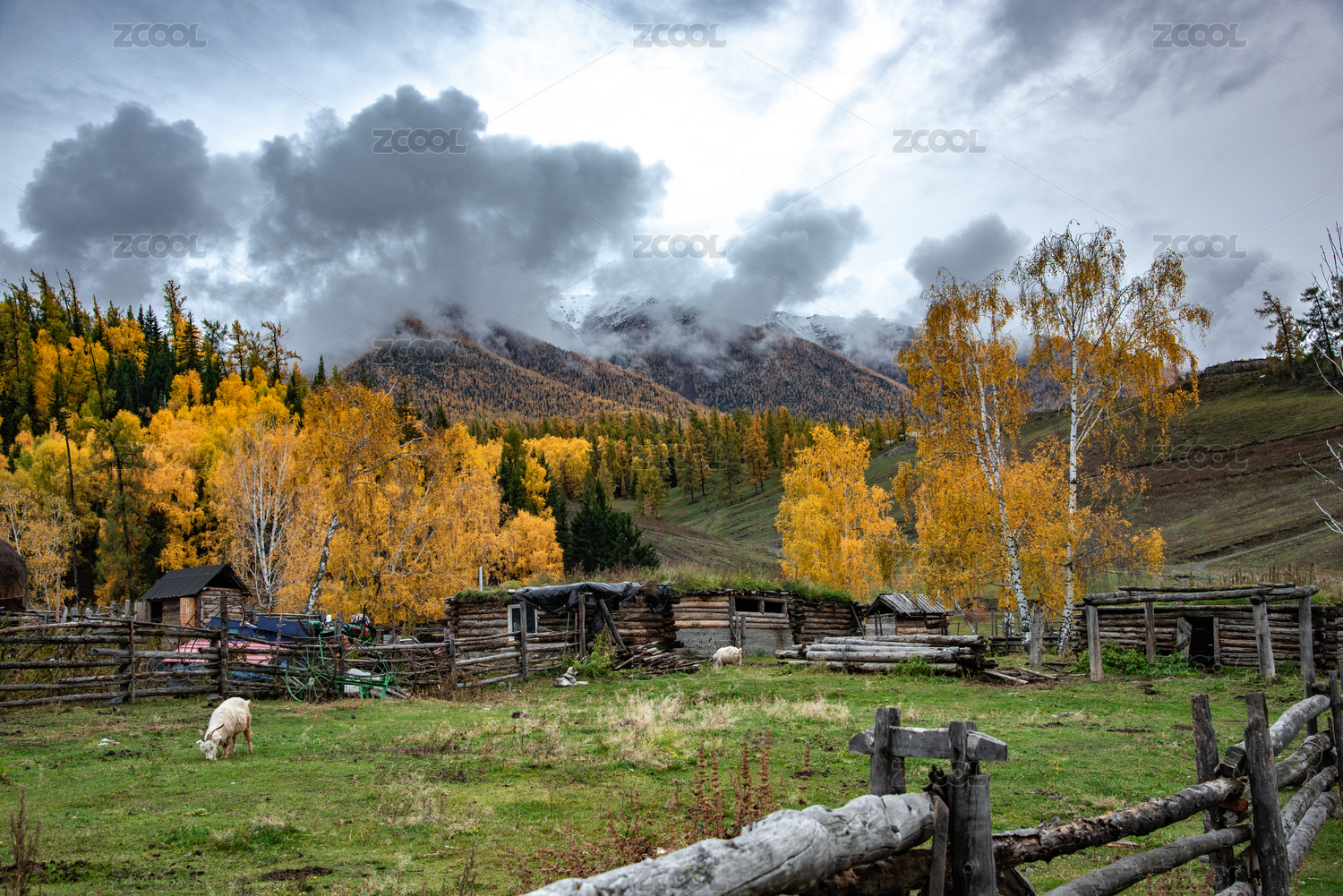 新疆,北疆,中国,白哈巴,秋季,金秋,深秋,金色,落叶,乡村