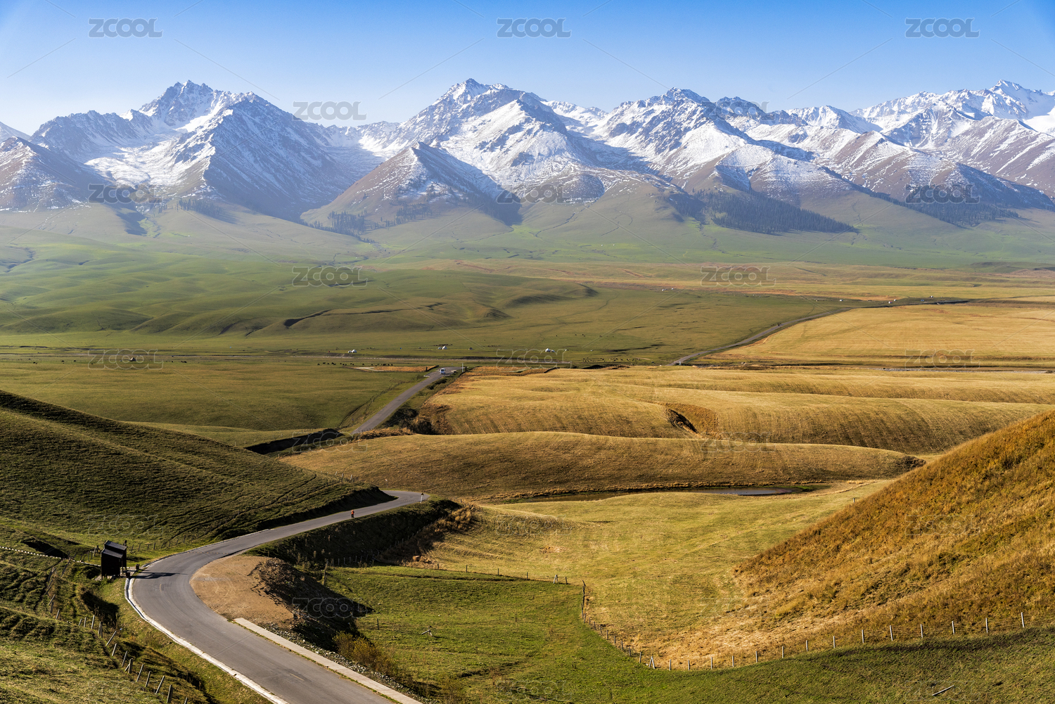新疆,蓝天,独子山,克拉玛依,国道,雪山,草原,秋季,独库,G217