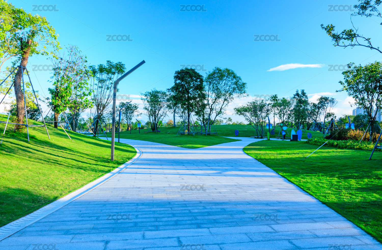 夏日阳光下的公园健身步道