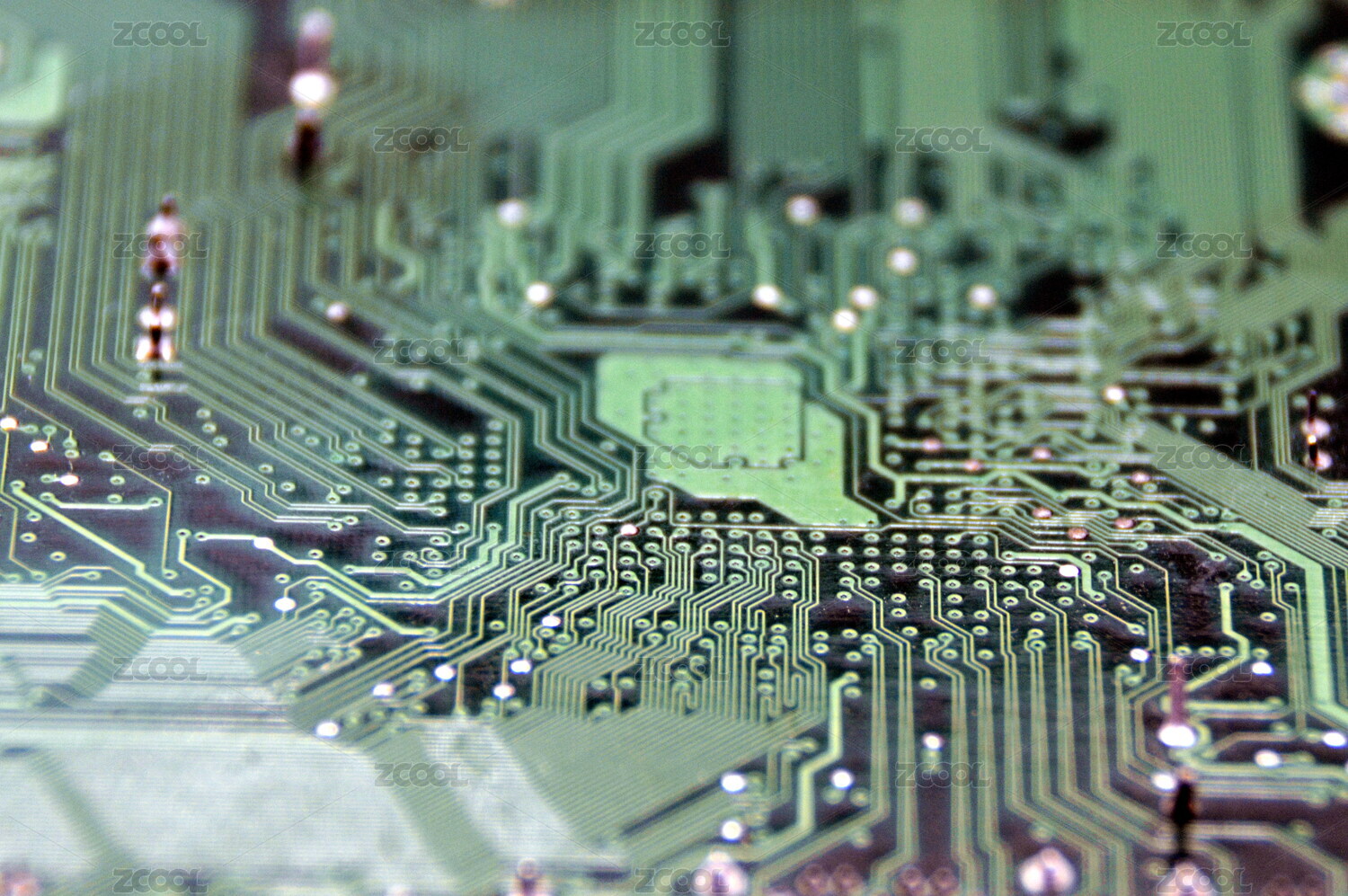 具有复杂细节绿色电路板特写