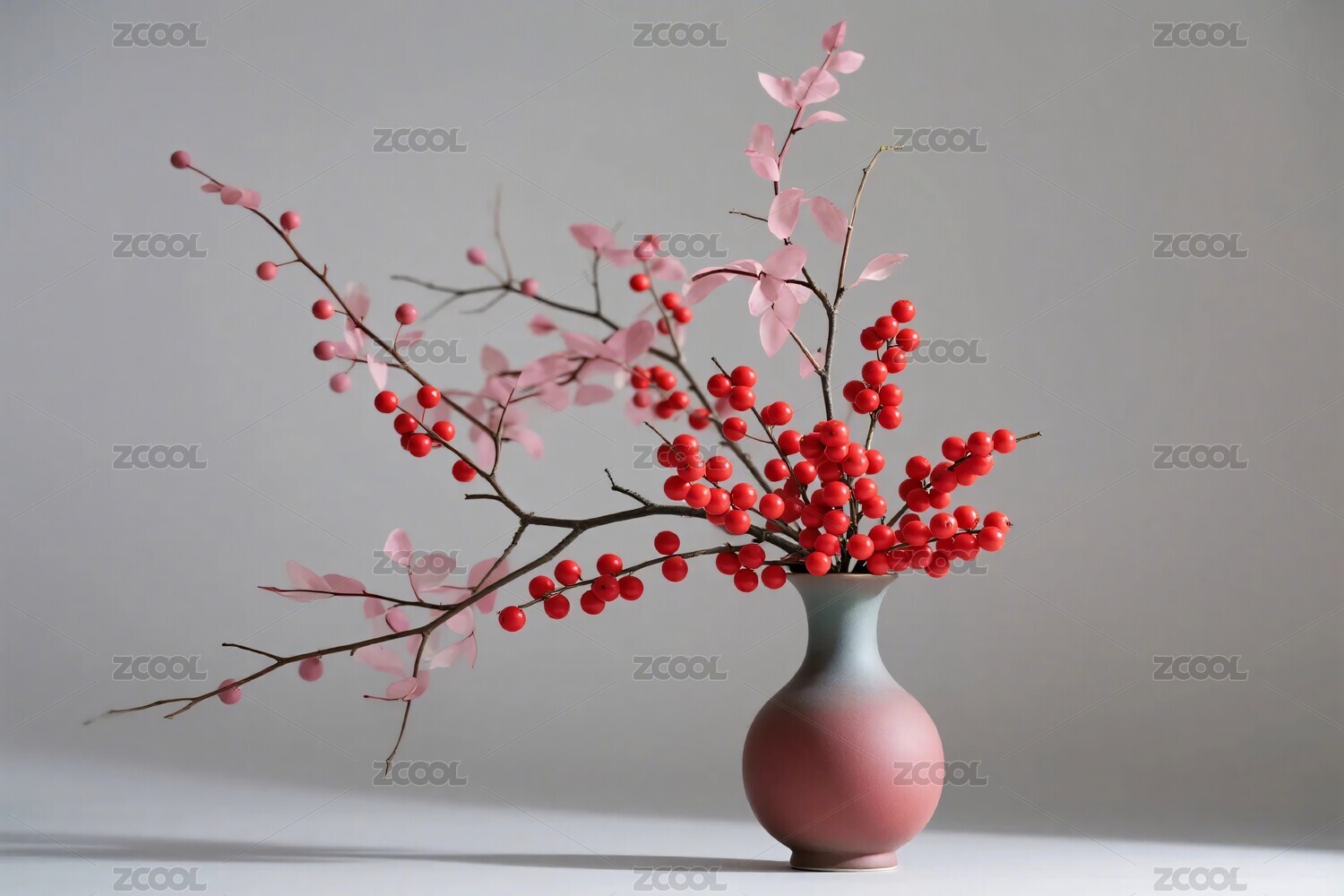 冬青花瓶中的红果,瓷瓶,冬青,红果,花瓶,装饰