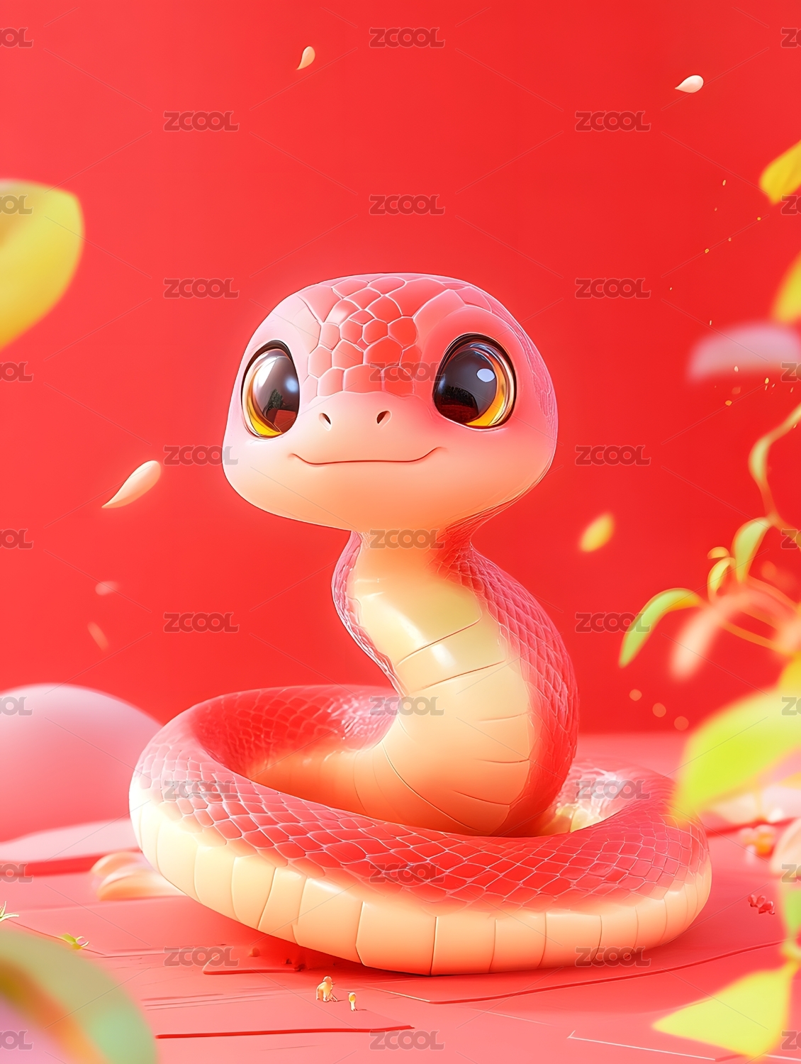 无人,蛇,动物,爬行纲,3d,卡通,可爱,蛇年,新年
