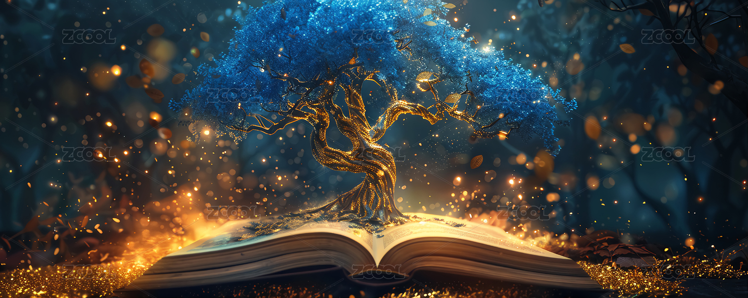 书本,一颗,科技,大树,插画,发光,树木,书籍