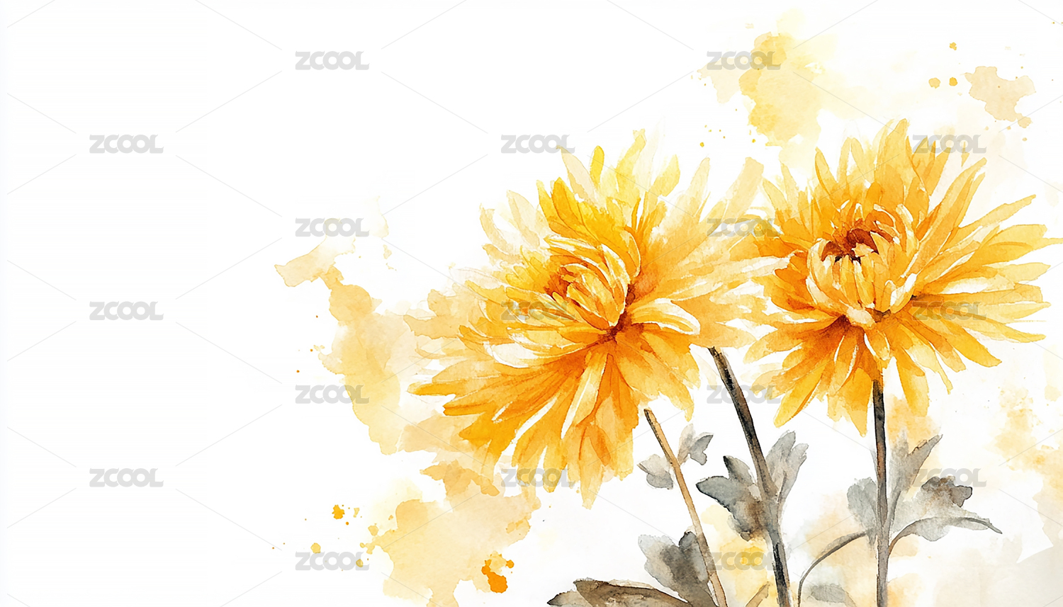 水墨,风格,黄色,菊花,黄菊,秋菊,金菊花
