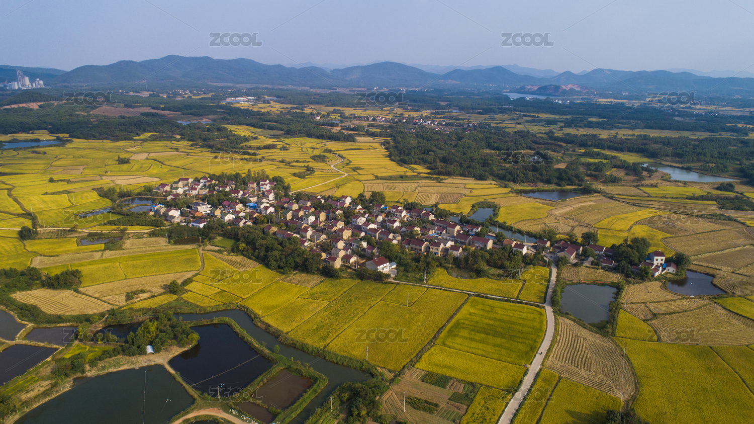 航拍中国安徽省宣城市郎溪县西郊田园秋色