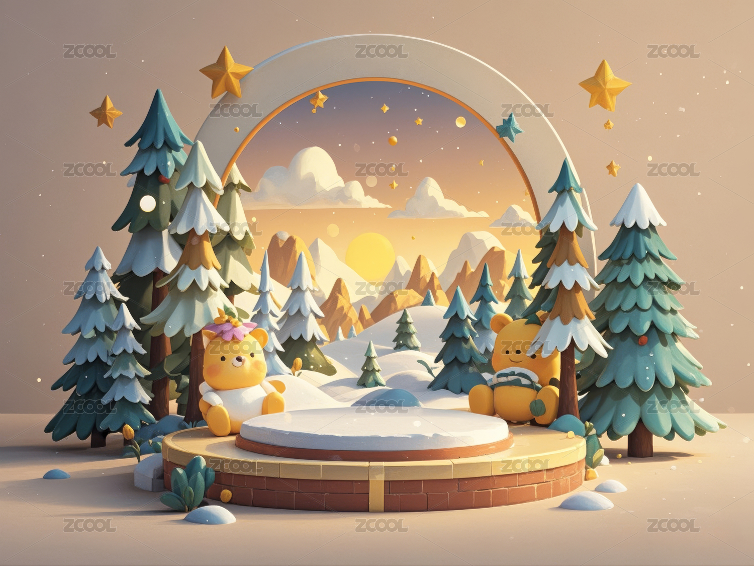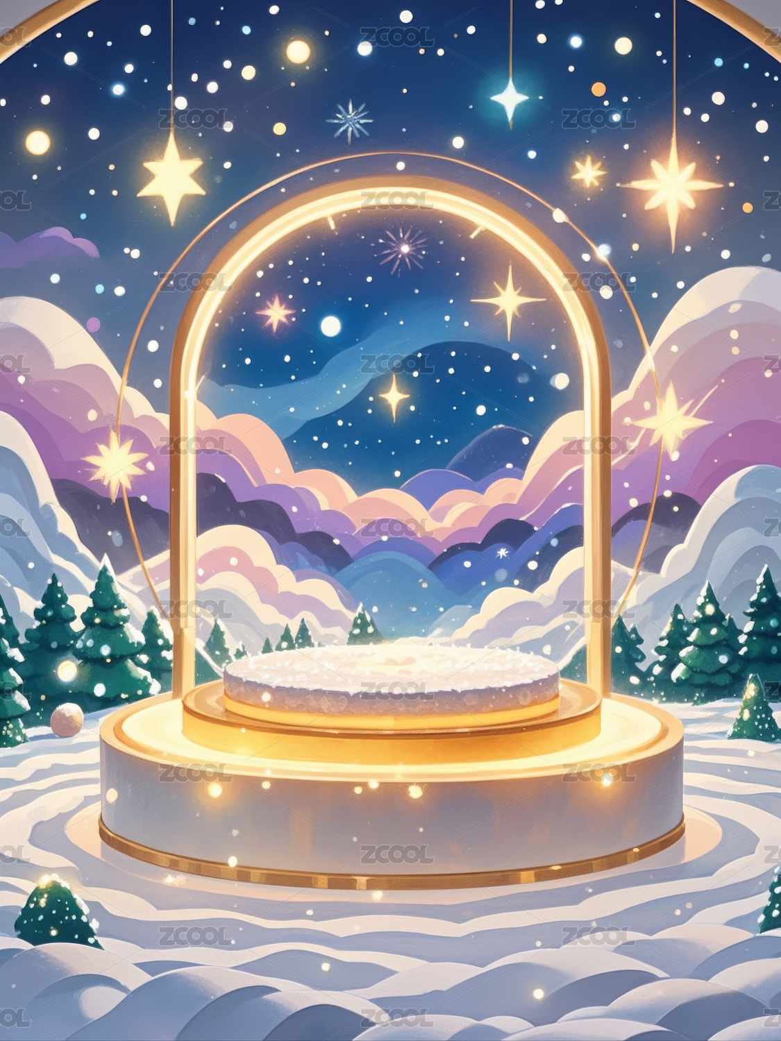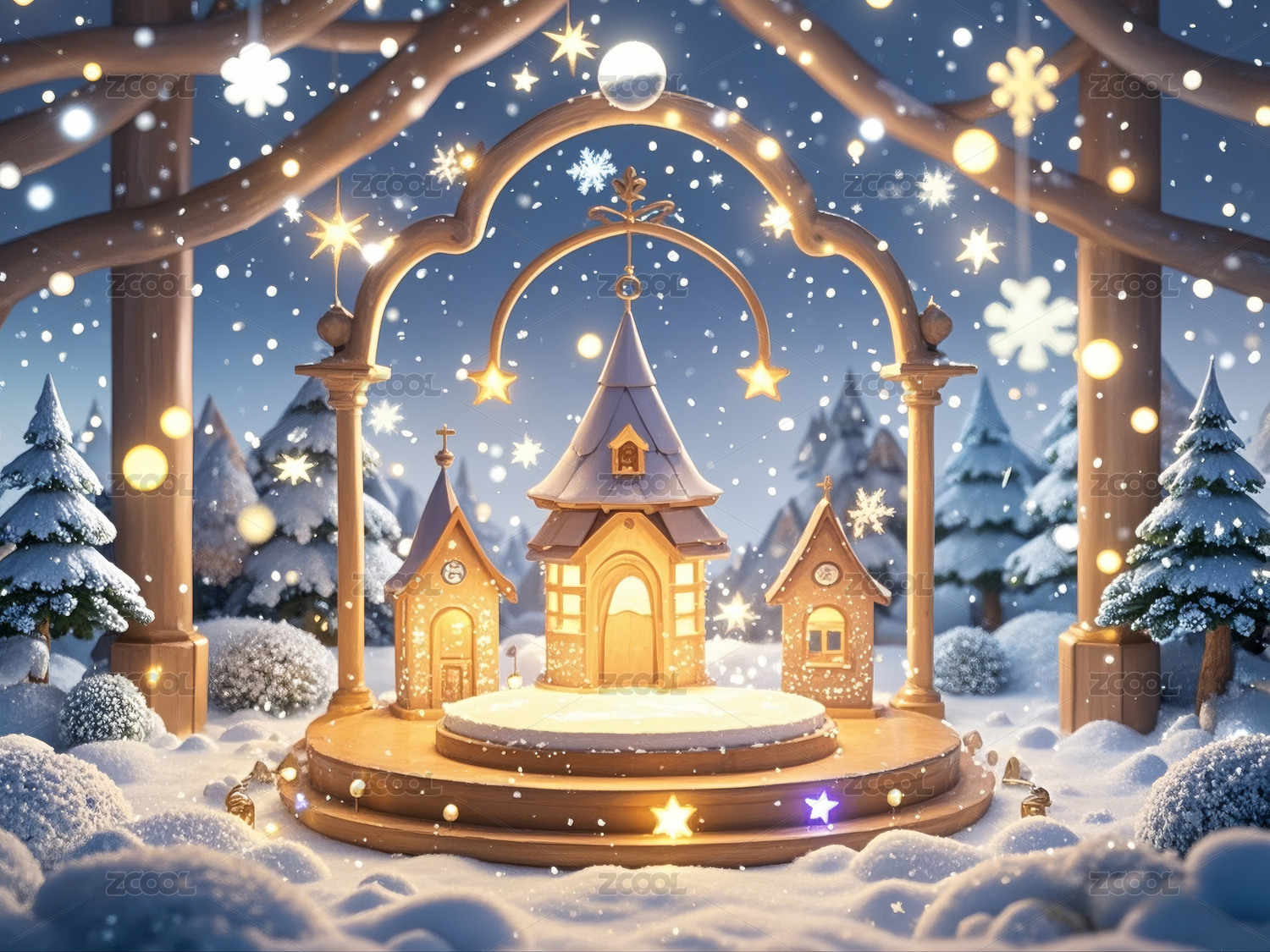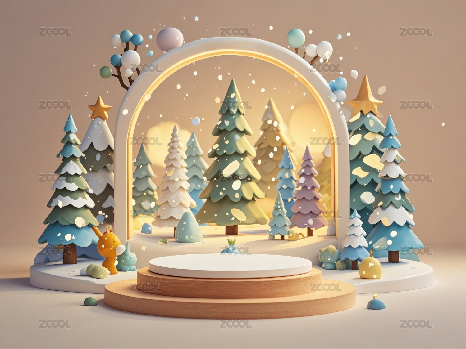 DXCZ202401,商品,展台,展示台,雪景,雪花,树木,白雪,圆形,拱门
