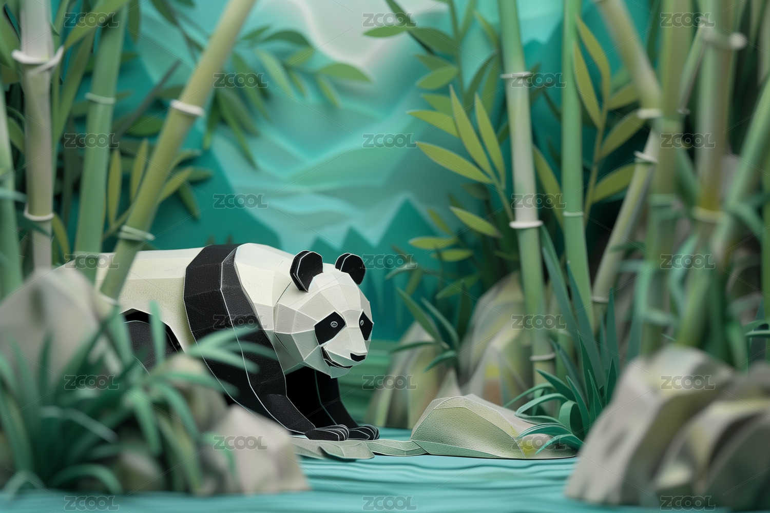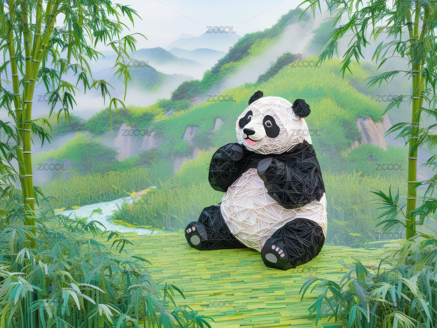 AIGC202404,熊猫,成都,可爱,剪纸,插画