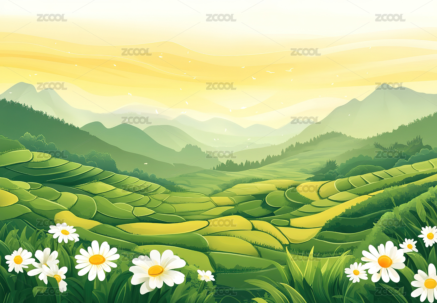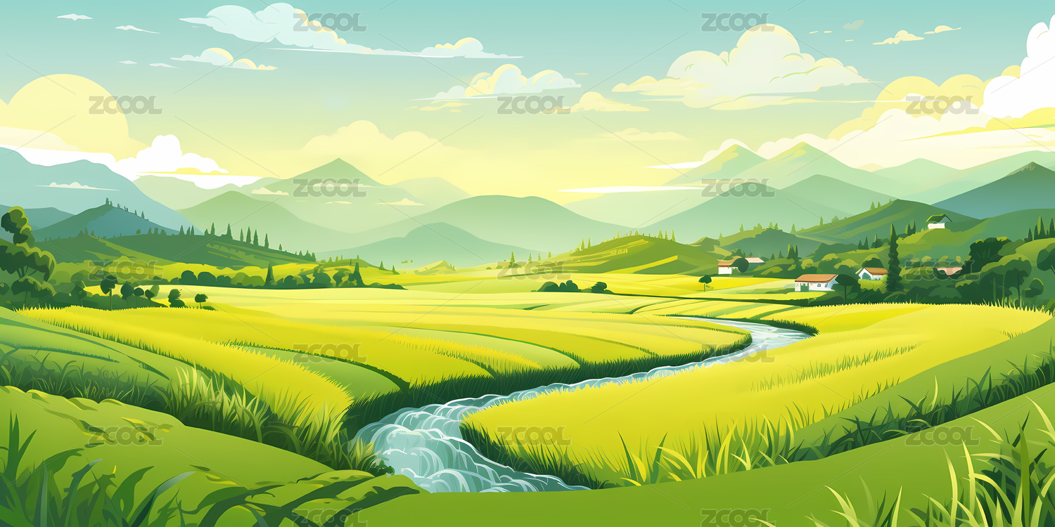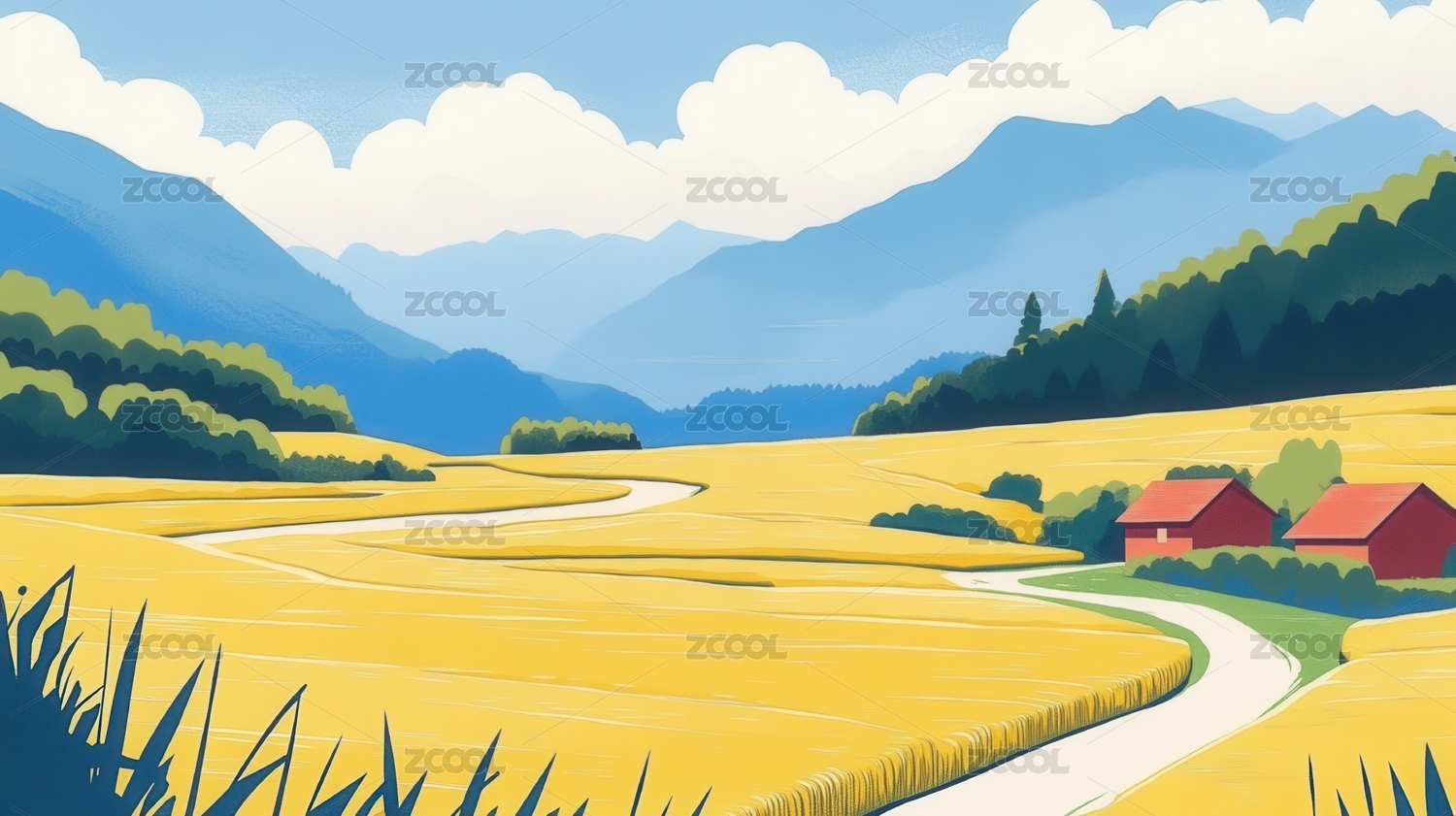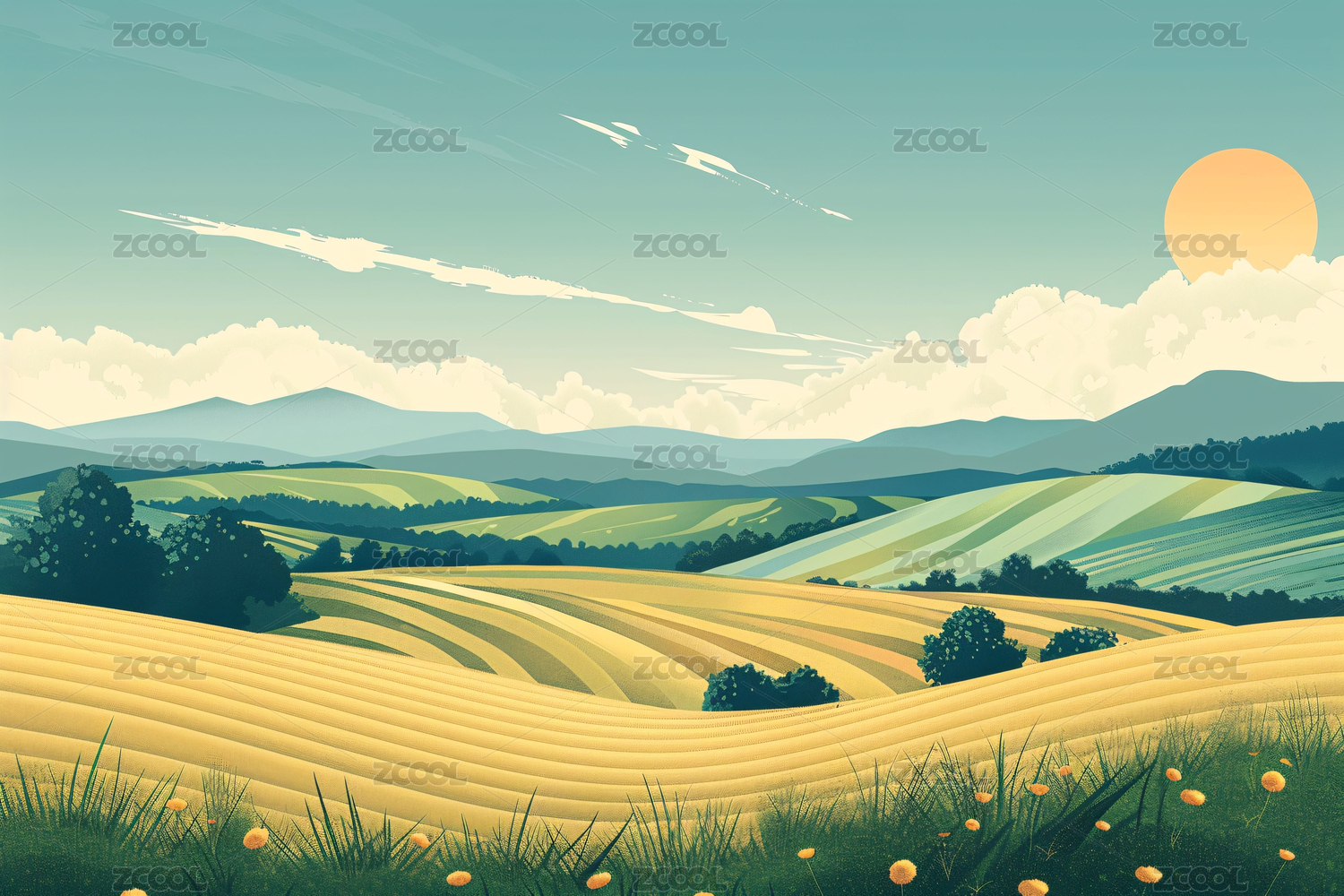 夏天农场耕种劳作场景田园风光芒种节气插画