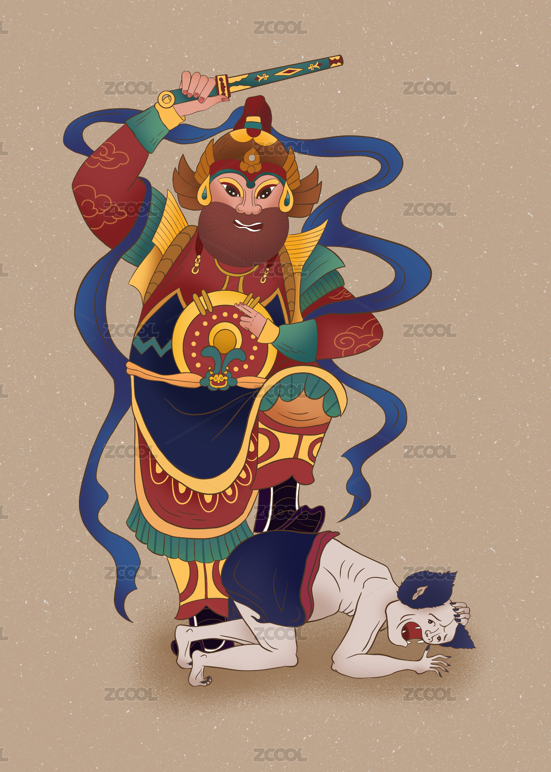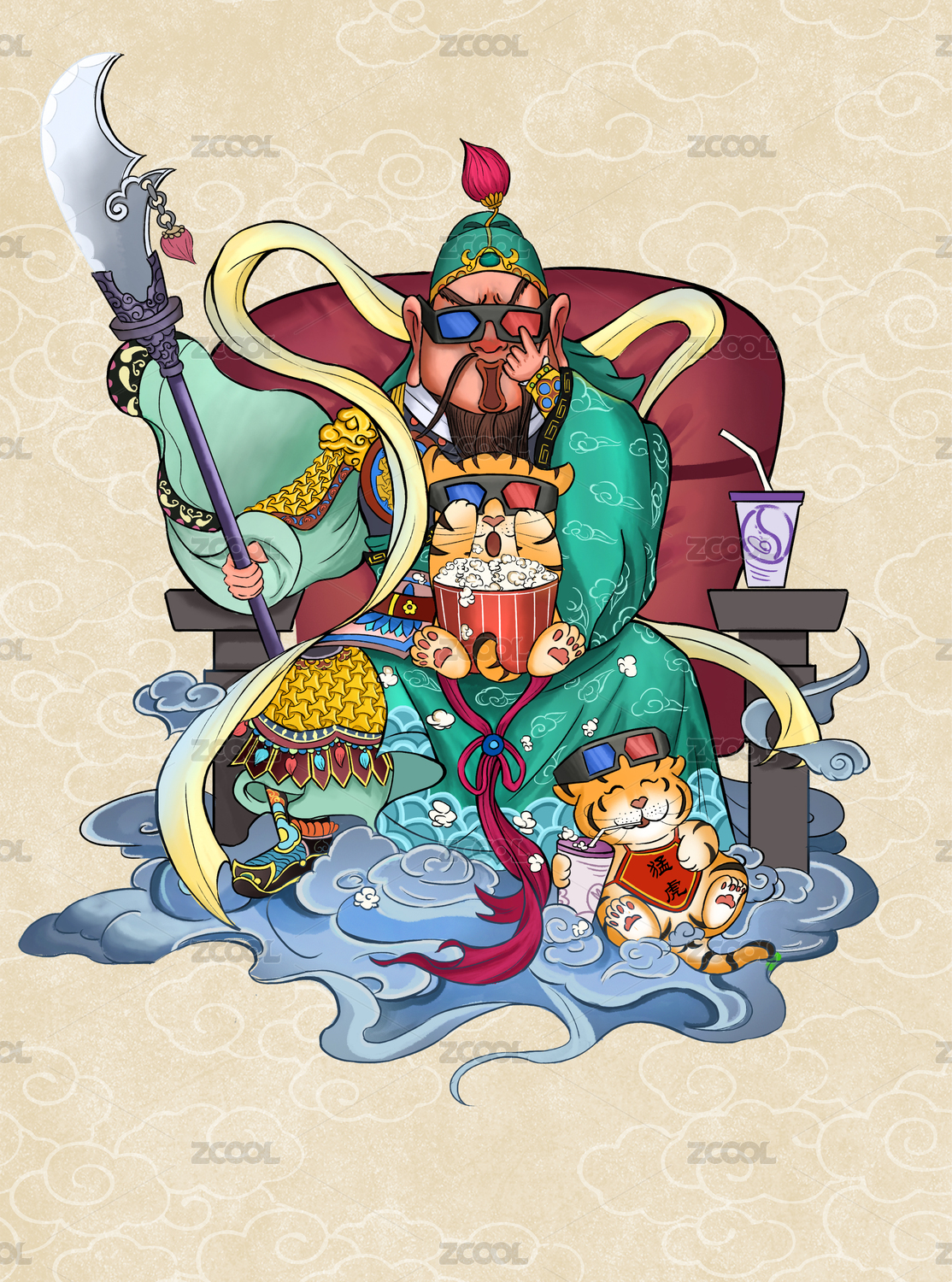 手持针筒脚踩平衡车身穿绿衣的门神关羽