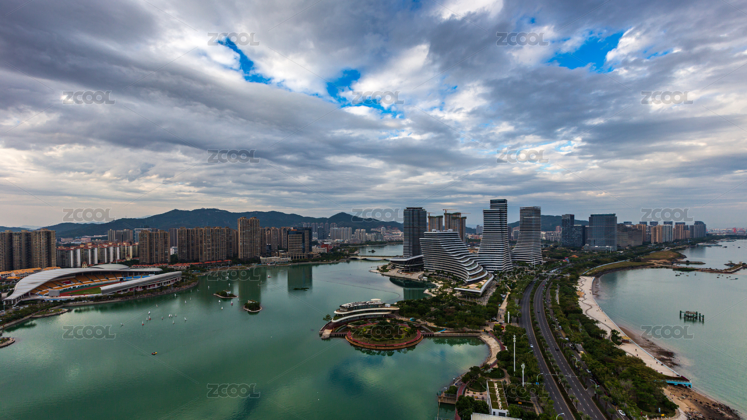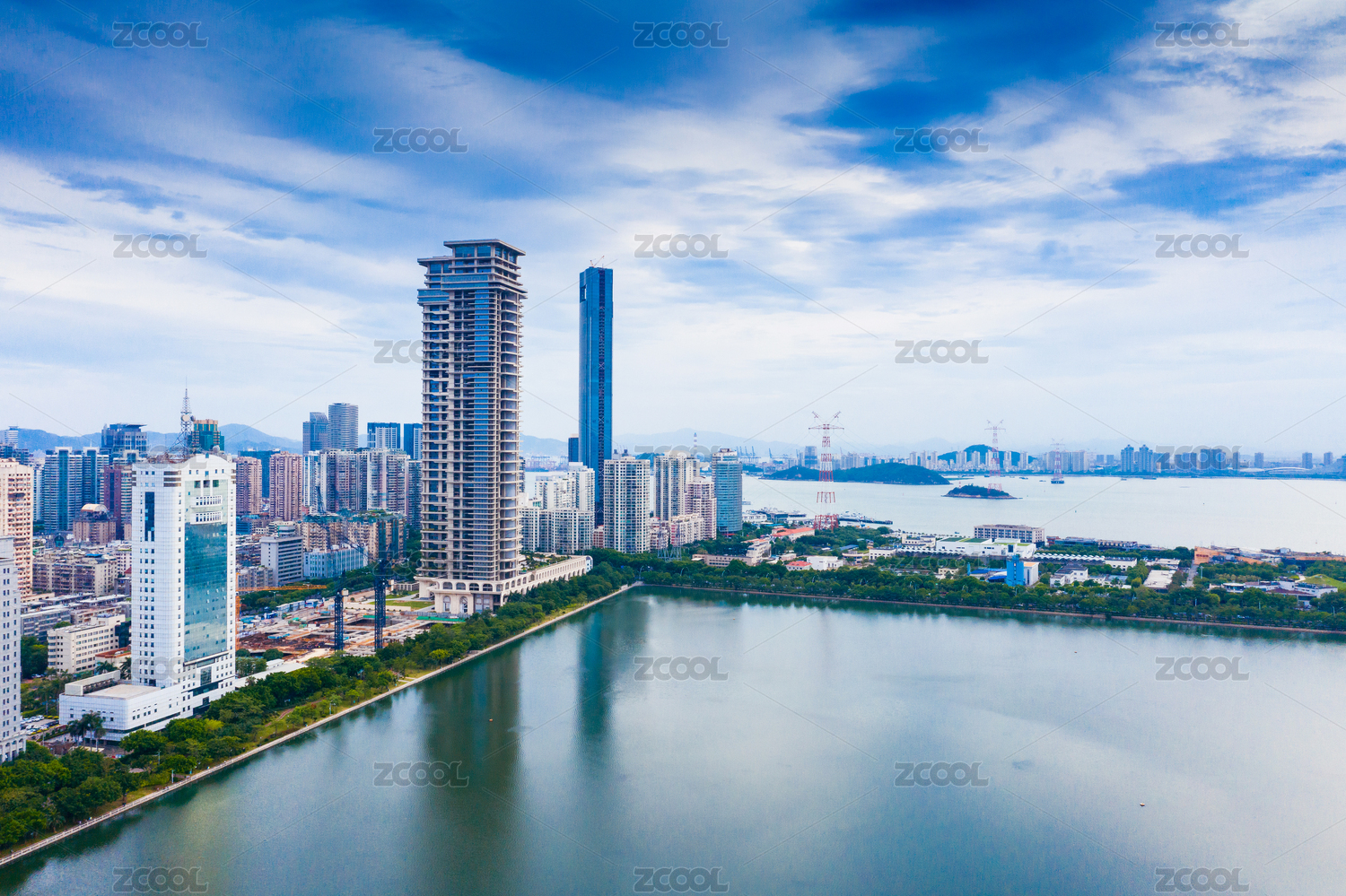 厦门风光,厦门旅游,蓝天,白云,海沧湖,湖景,高楼,大厦,大海,滨海风光