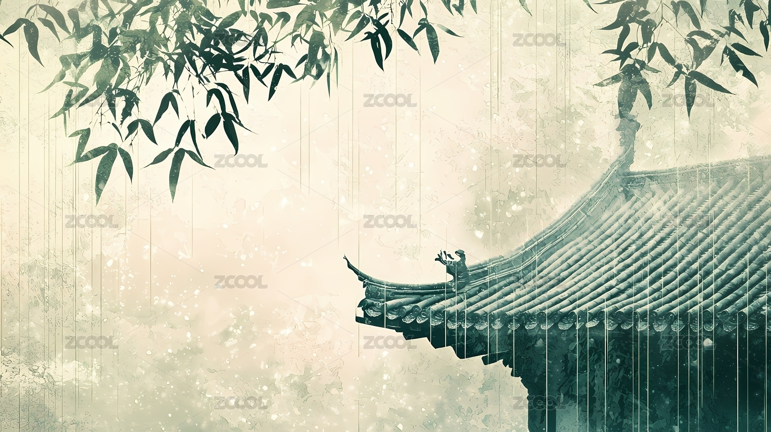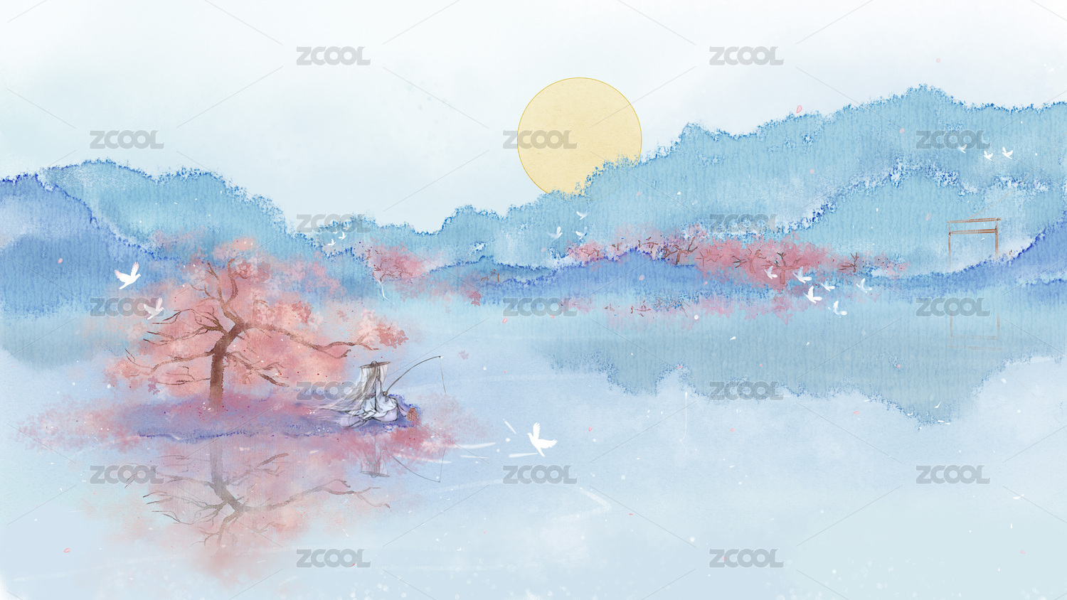 水墨,山水,中国风,国潮,建筑,亭子,国风,插画,古风,秋冬