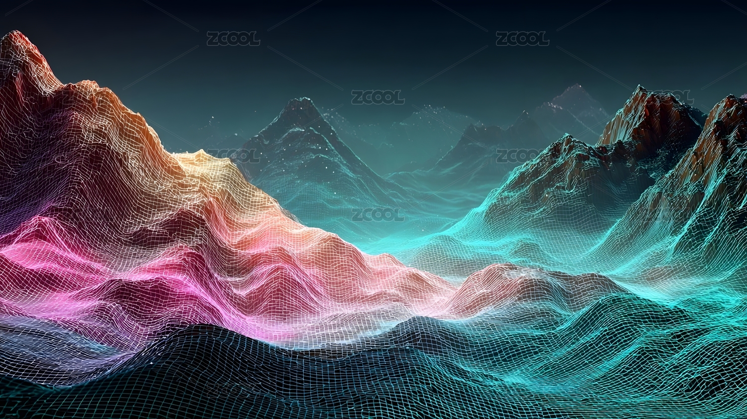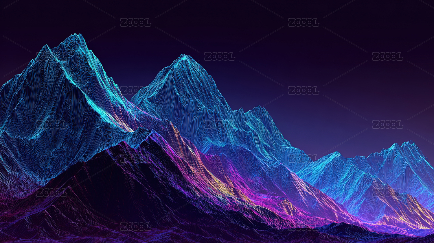 3D渲染山丘山脉高山大山山峰数字艺术插画