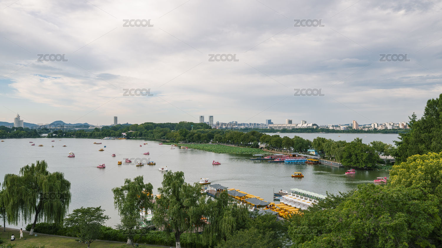 俯瞰中国南京玄武湖公园菱洲码头
