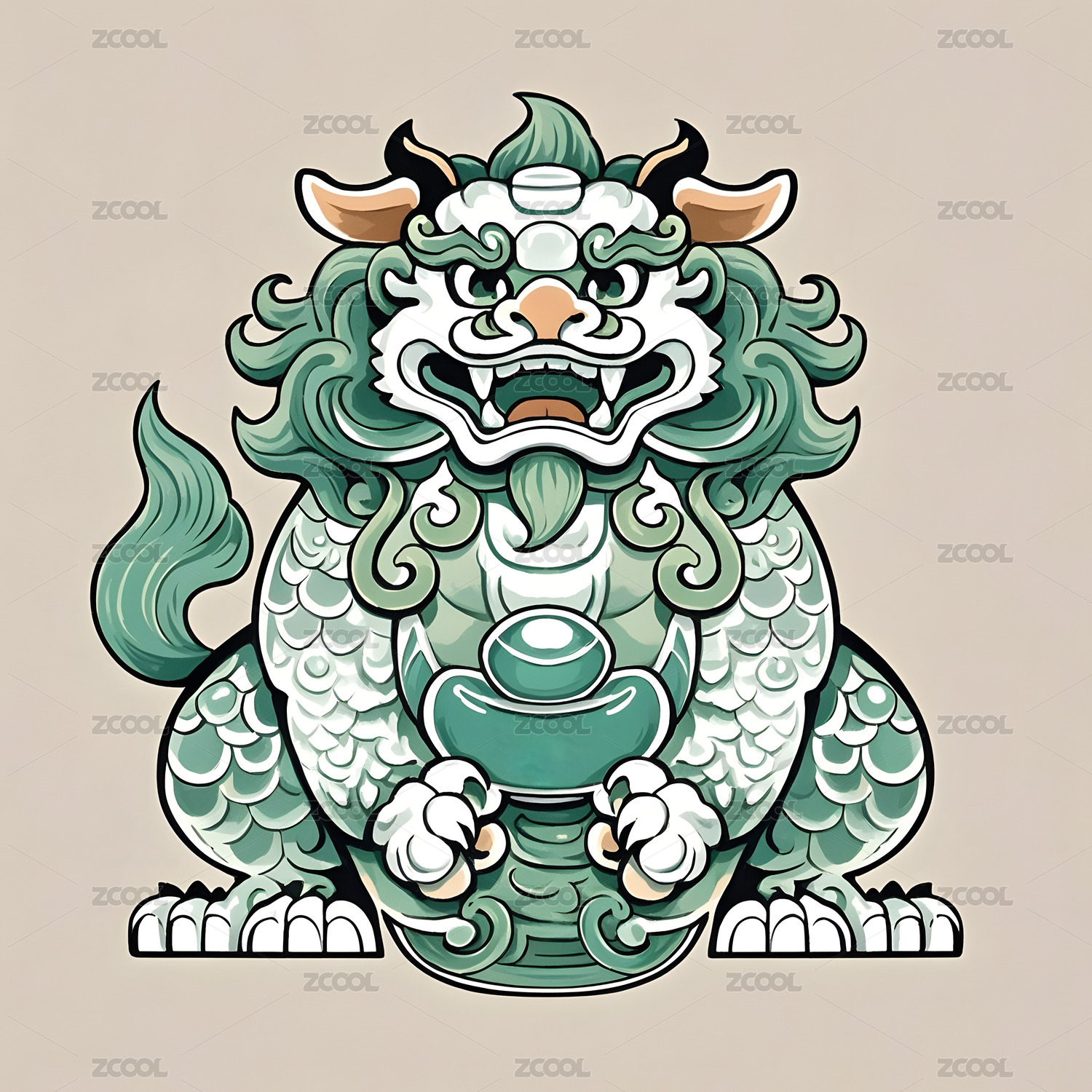 传统古典手绘飞天麒麟神兽矢量白描中国画