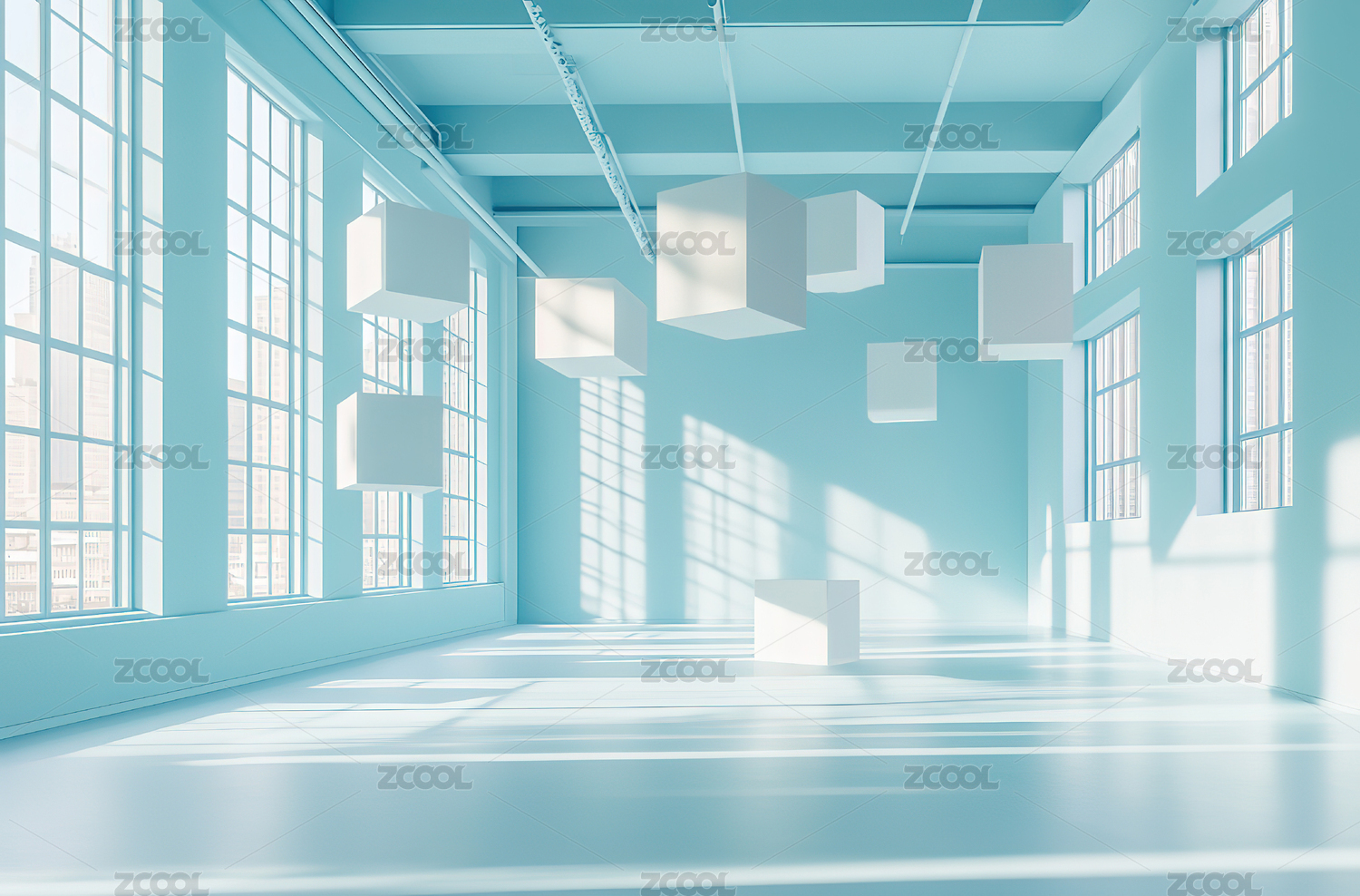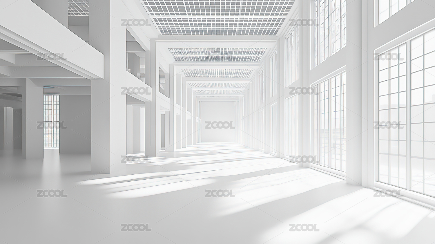 白色现代建筑室内空间设计背景