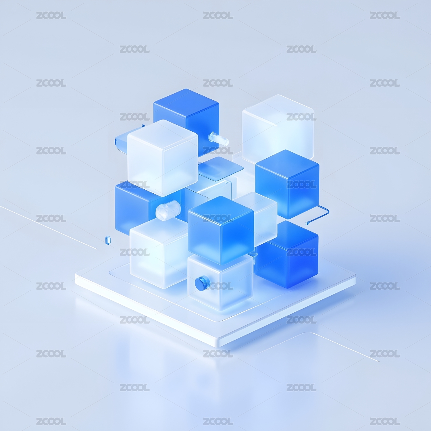 3D卡通透明玻璃蓝橙宝石材质数据图表图标
