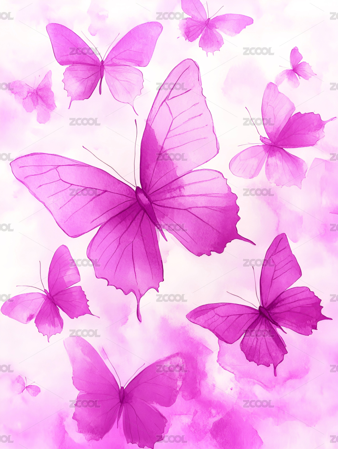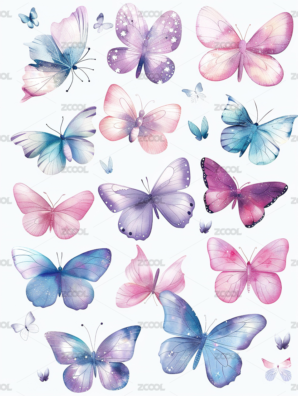 唯美梦幻展翅飞翔的蝴蝶图案印花插画