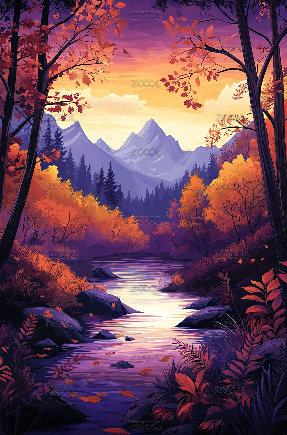 数码水彩森林风景抽象图形海报背景