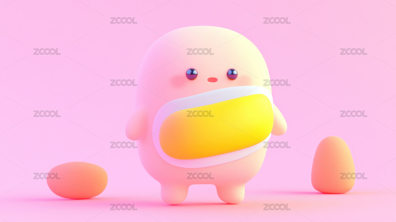 卡通,可爱,眼睛,粉色,背景,蛋,3D,黄色,嘴巴,渲染