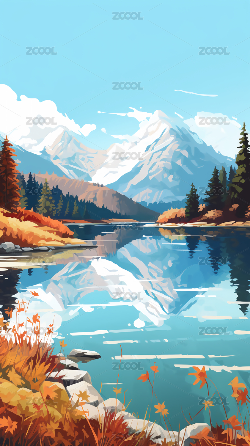 户外湖泊山水插画