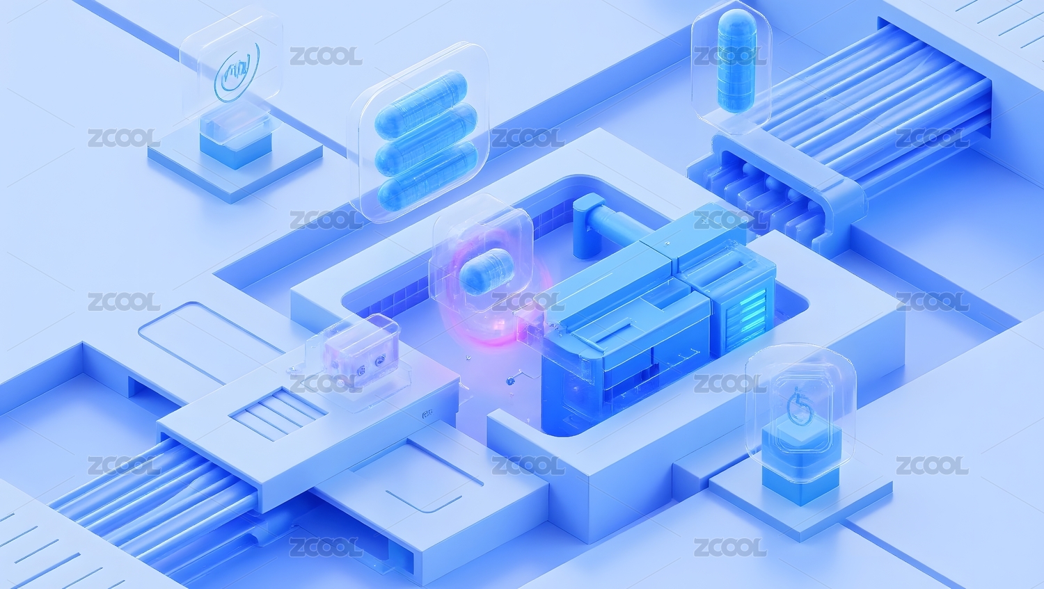 科技医疗等距元素蓝色系列插图