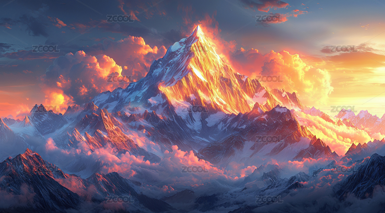 雪山日出壮丽景色