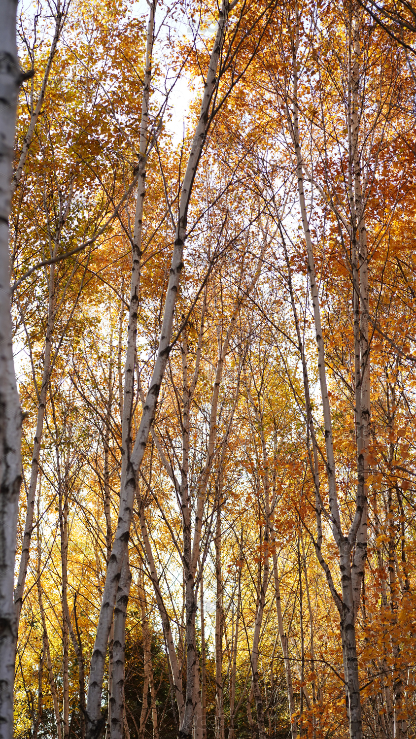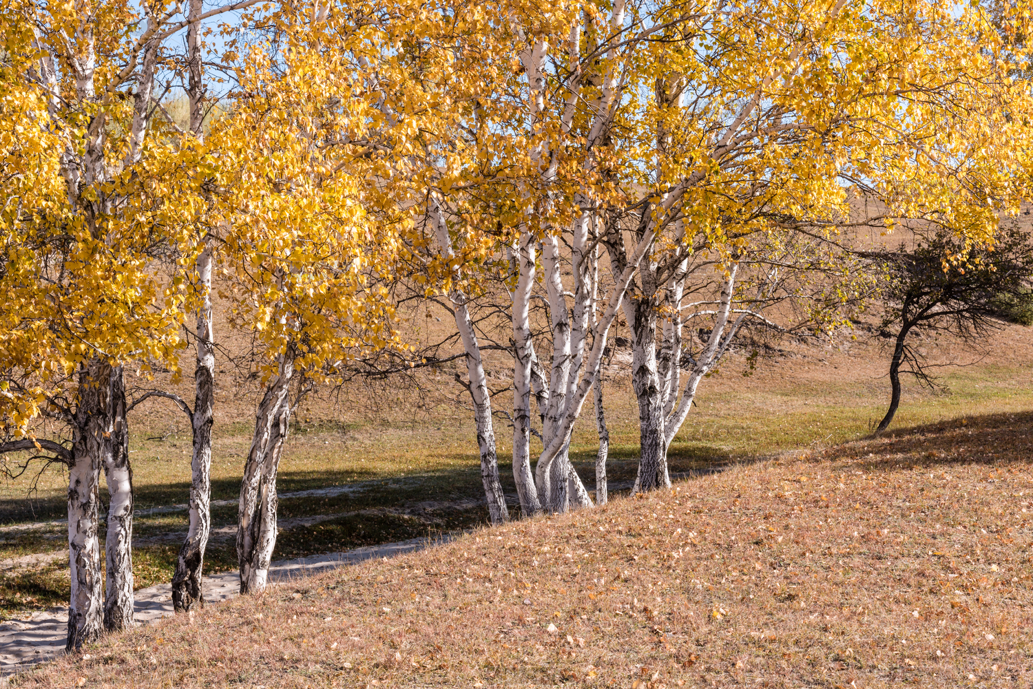 秋天内蒙古乌兰布统坝上草原的白桦树白桦林
