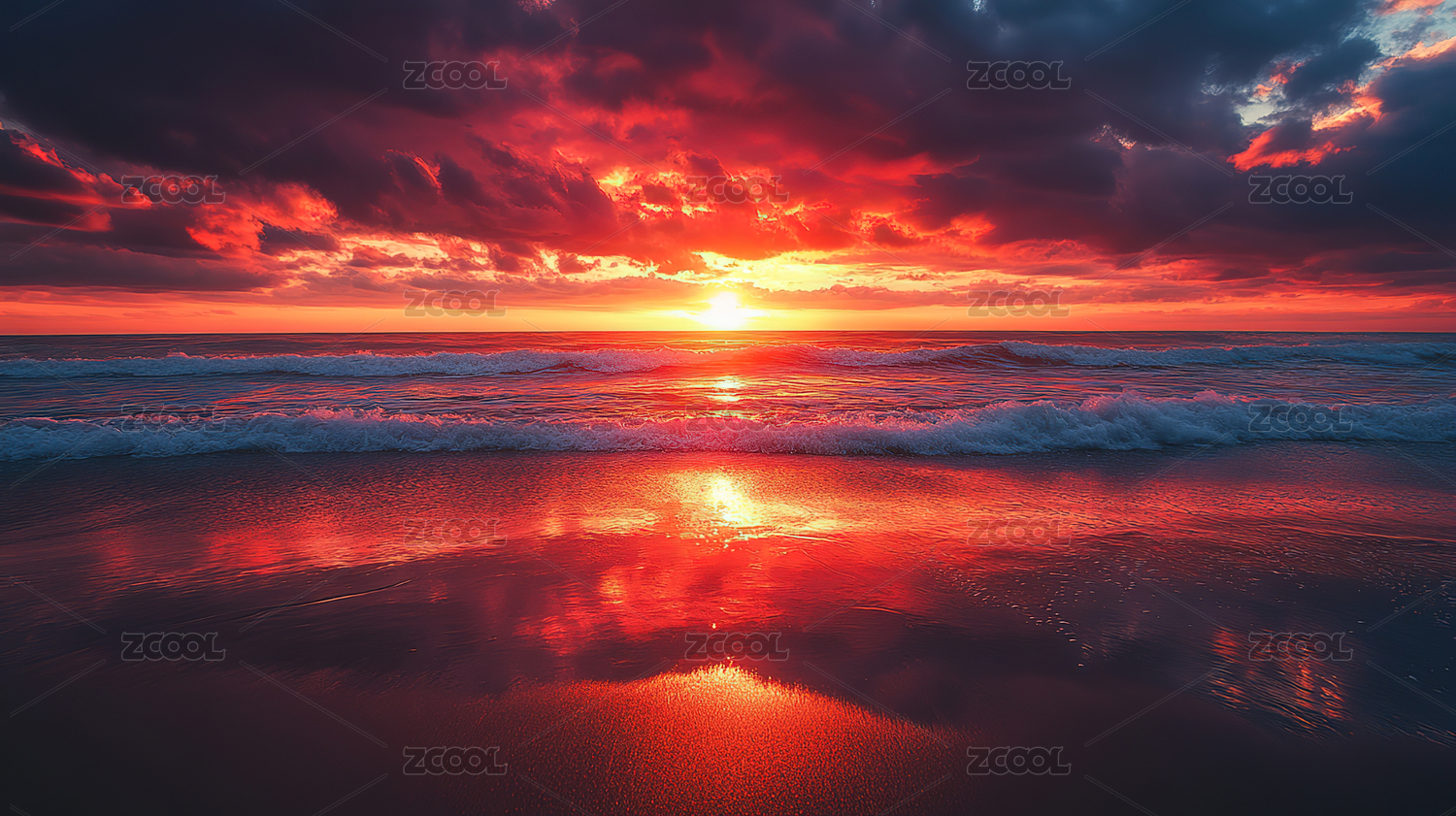 日落海浪天空云彩