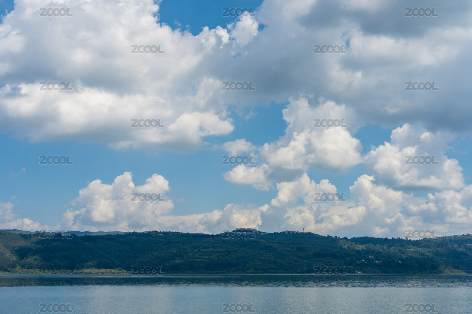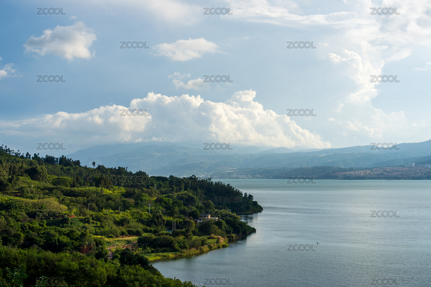 云南会泽大桥镇蓝天白云山脉湖泊自然风光