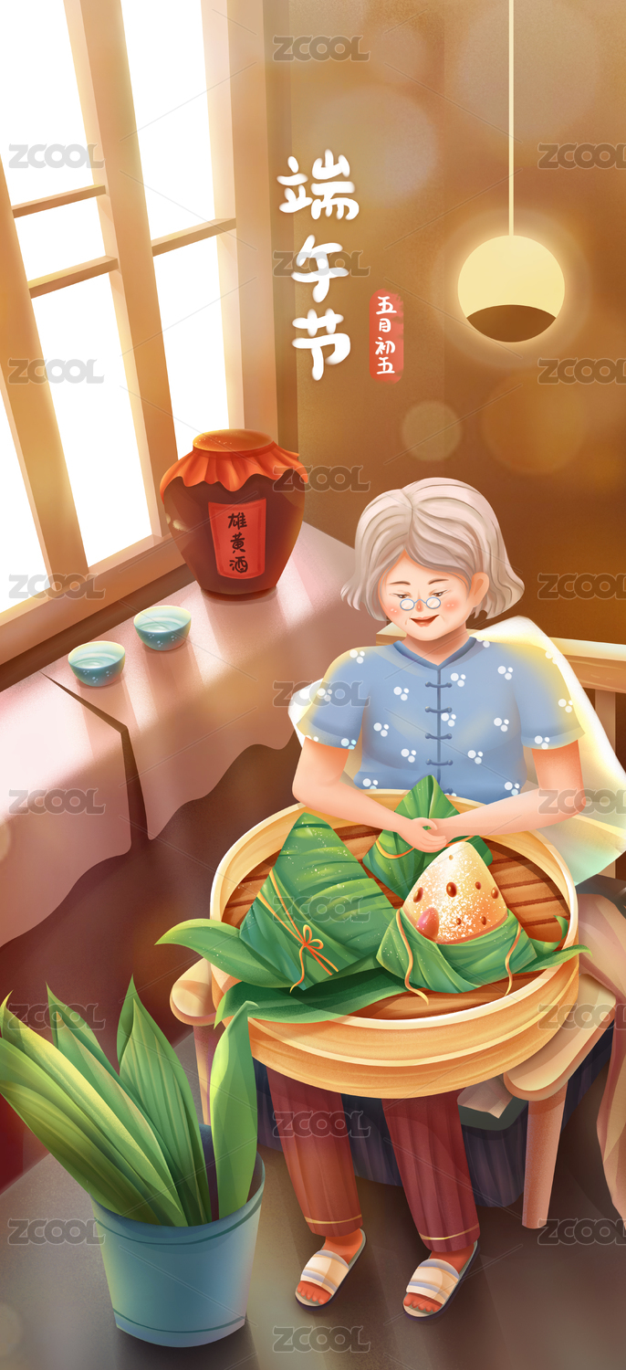 端午节传统节日:爷爷乘凉,奶奶做粽子,相聚一刻