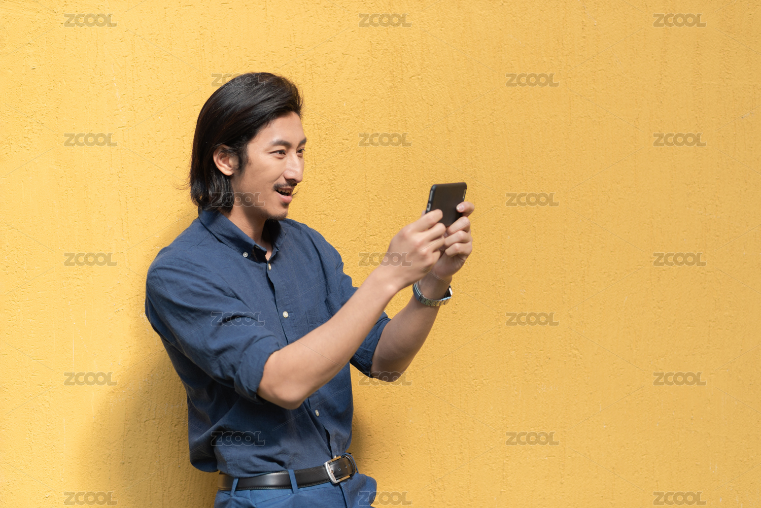 年轻帅气的亚裔男士手持手机