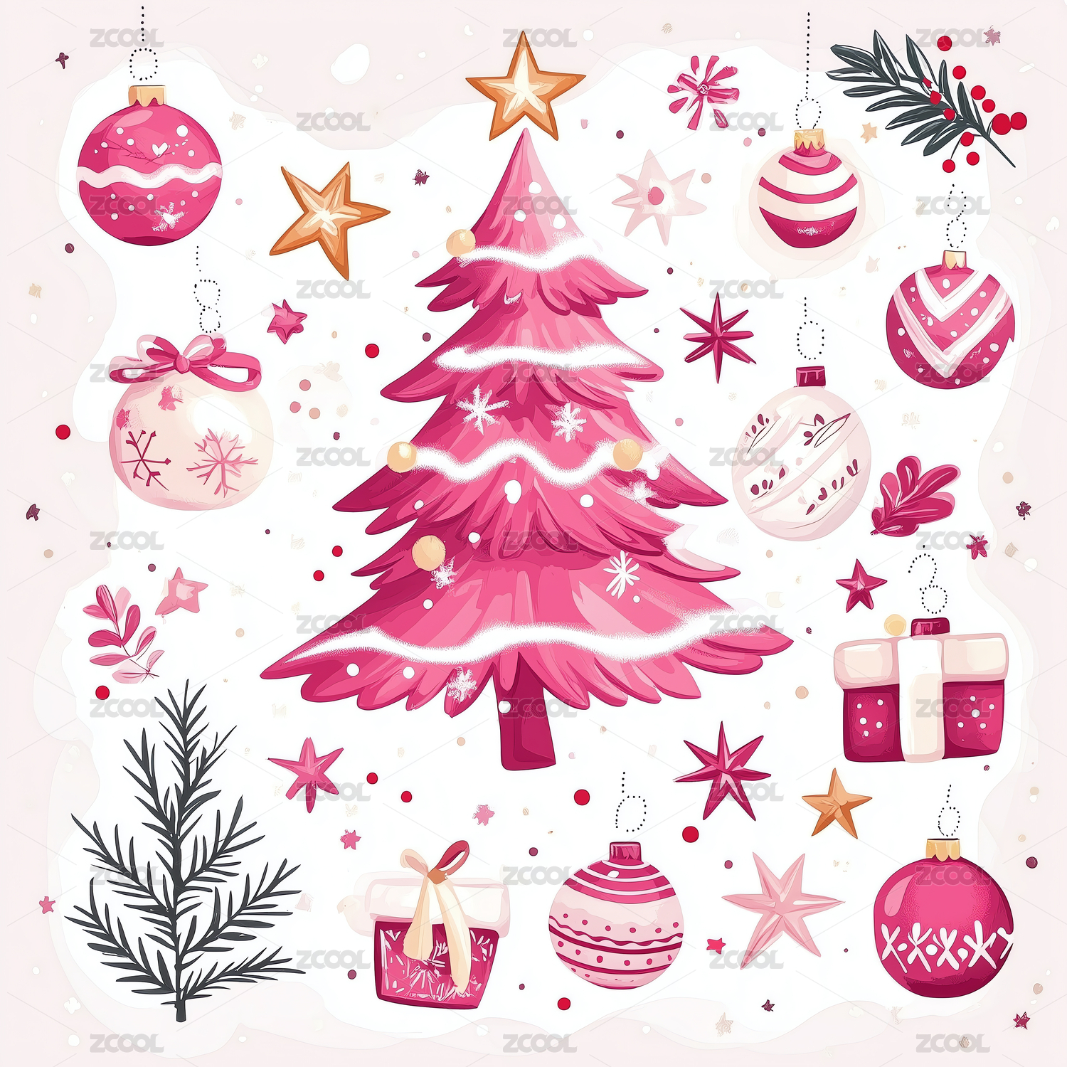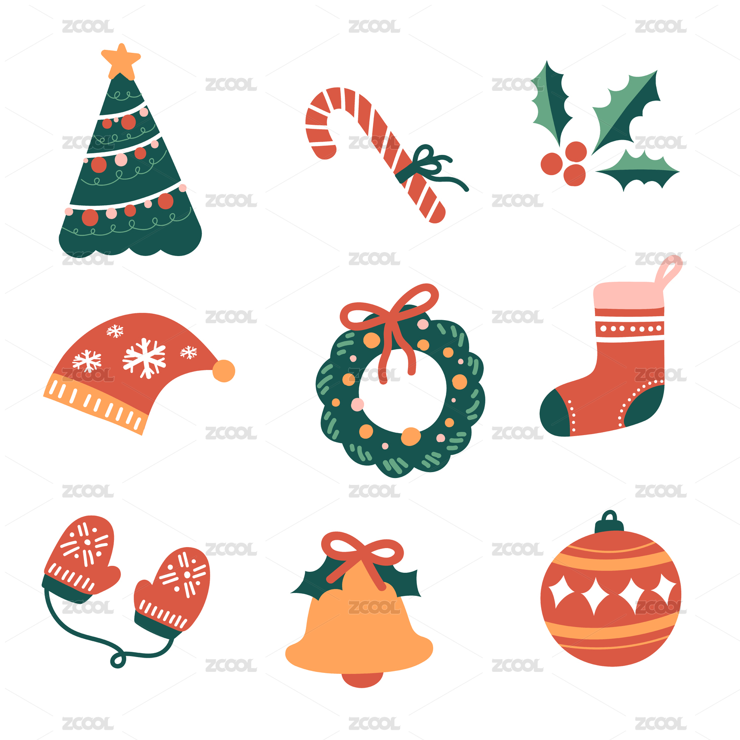 圣诞节元素插画集合冬季节日装饰
