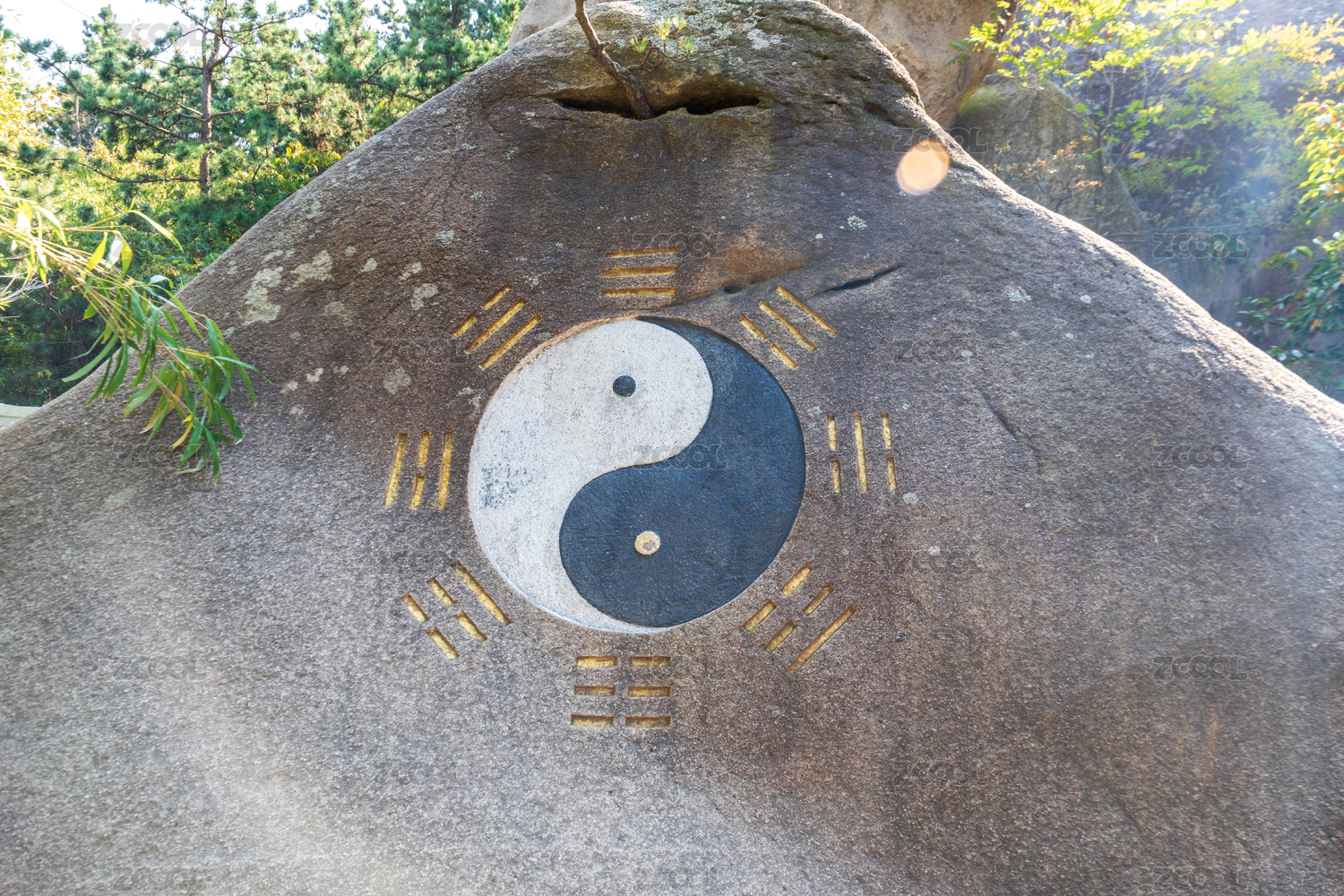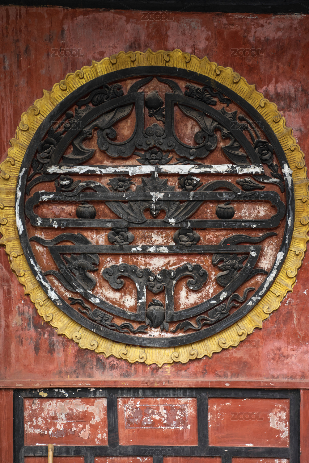山西省平遥古城二郎庙道教庙宇内的八卦图浮雕