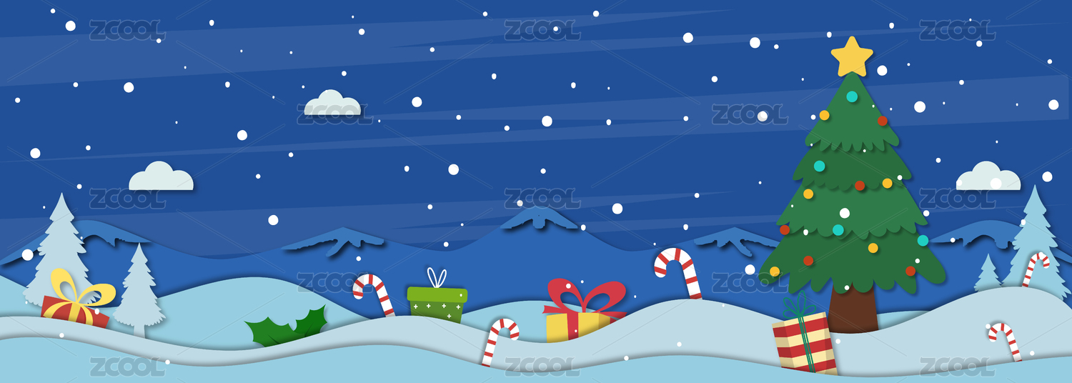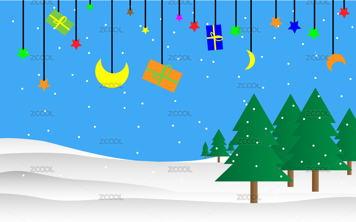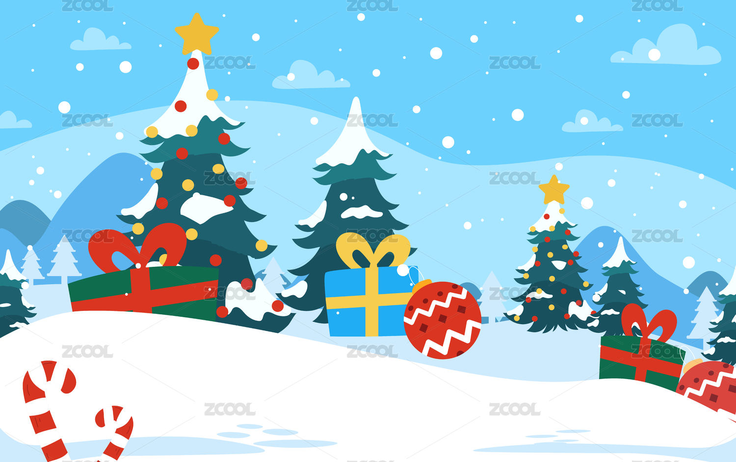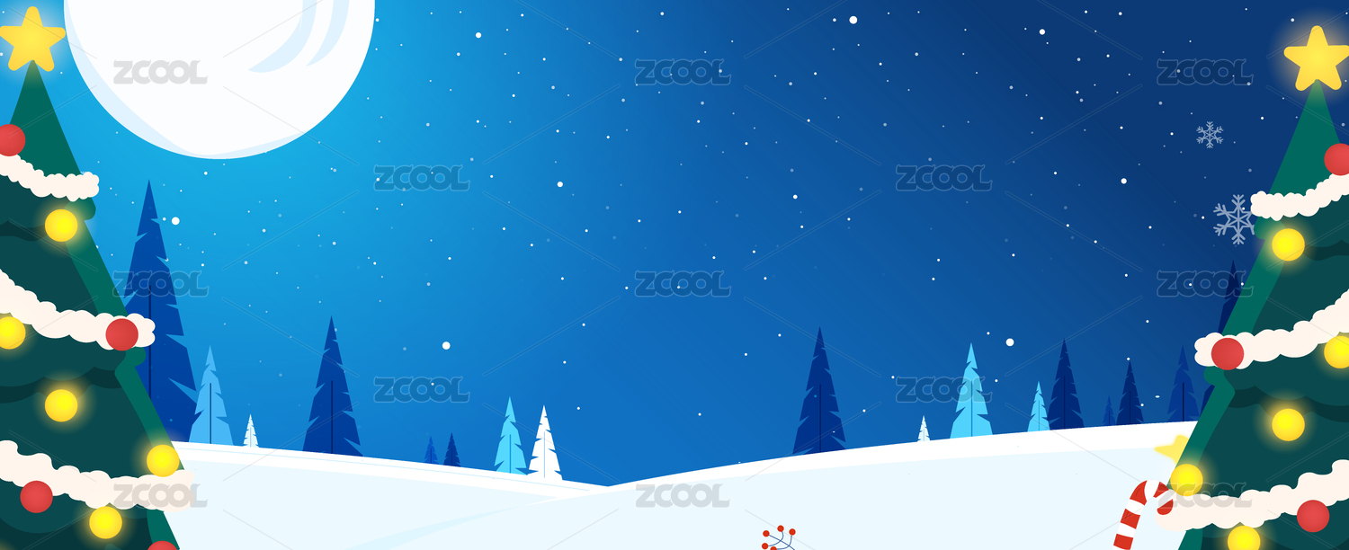 卡通圣诞节冬季雪景背景素材扁平插画