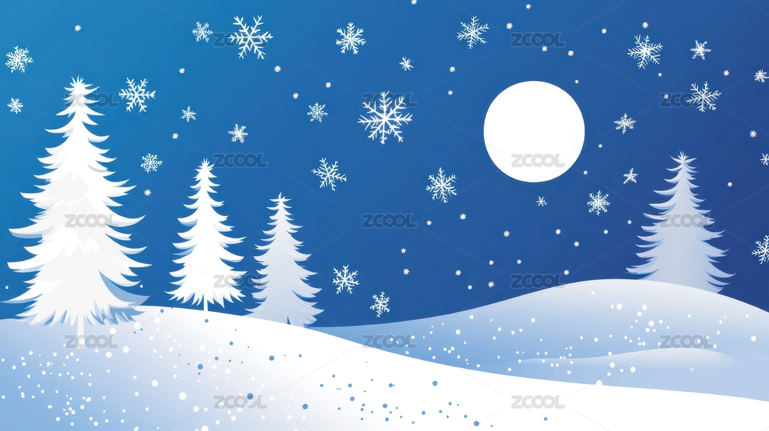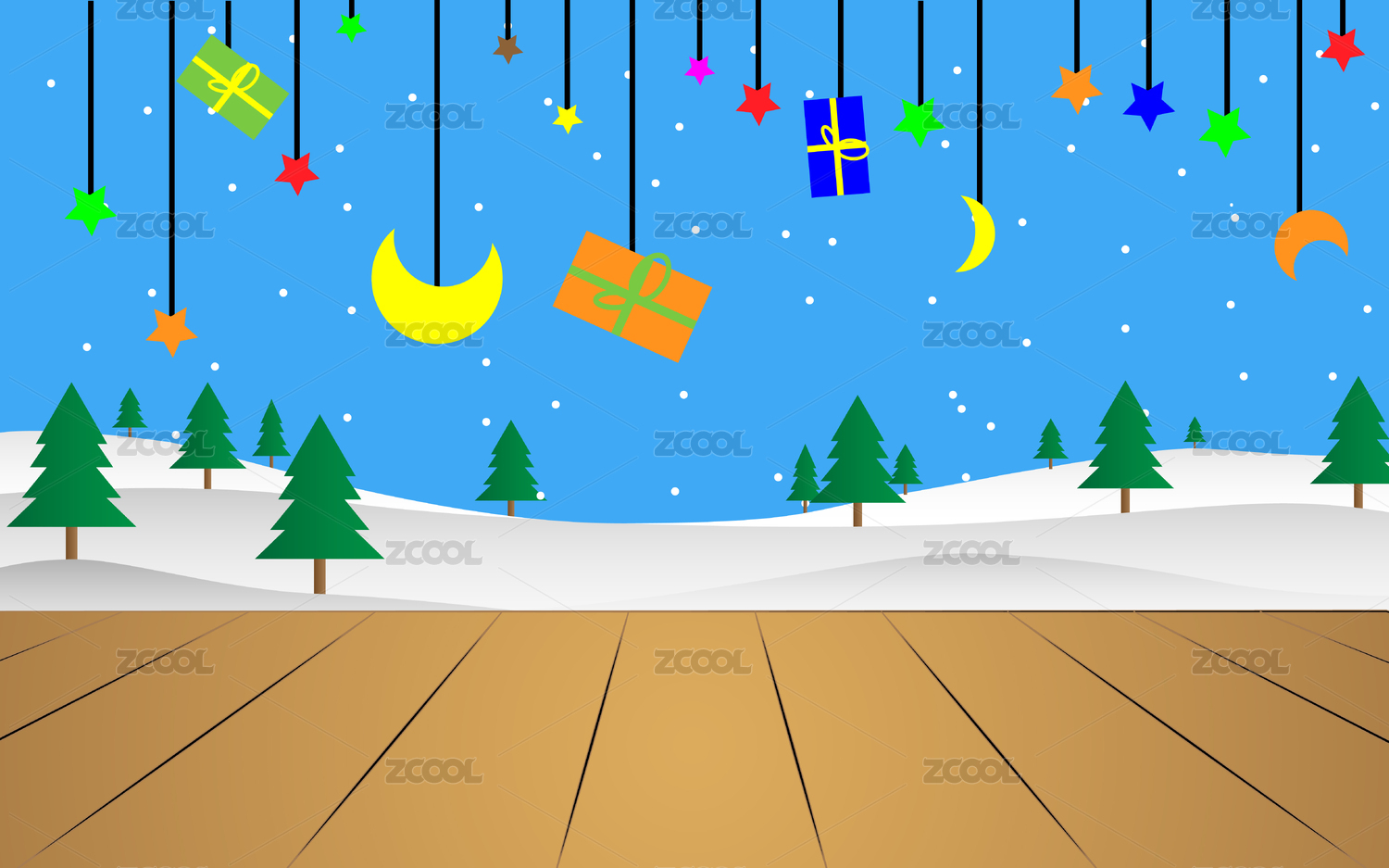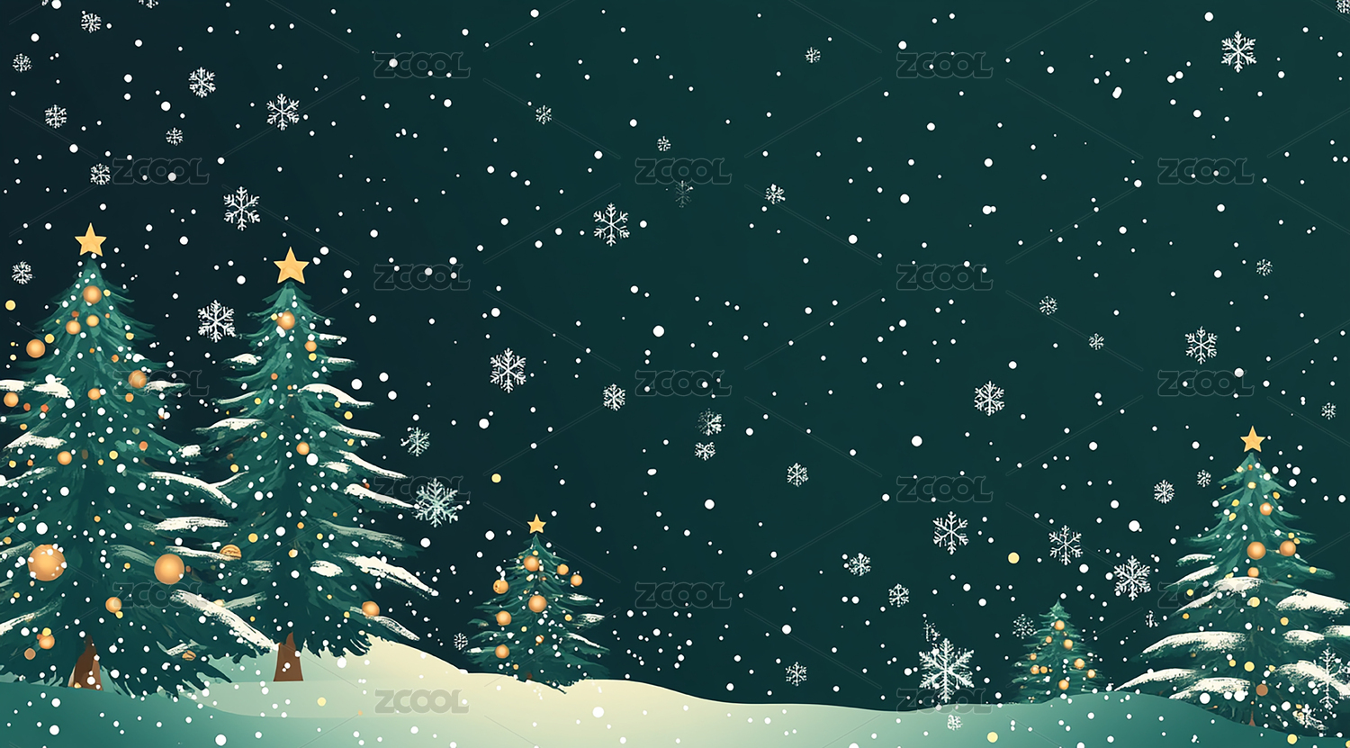 卡通圣诞节冬季雪景背景素材扁平插画