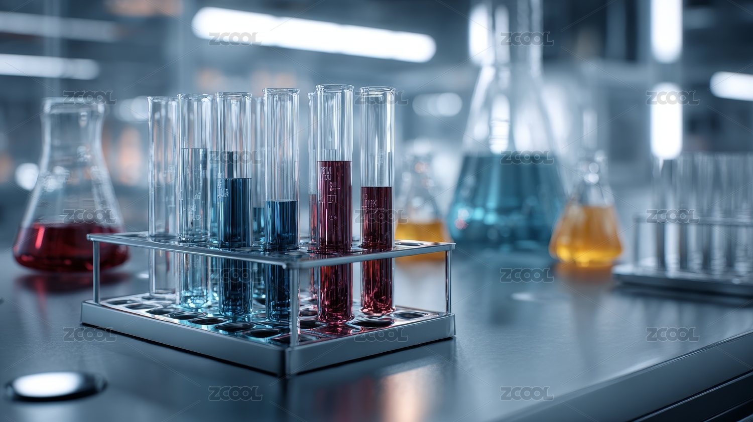 蓝色液体的实验室场景