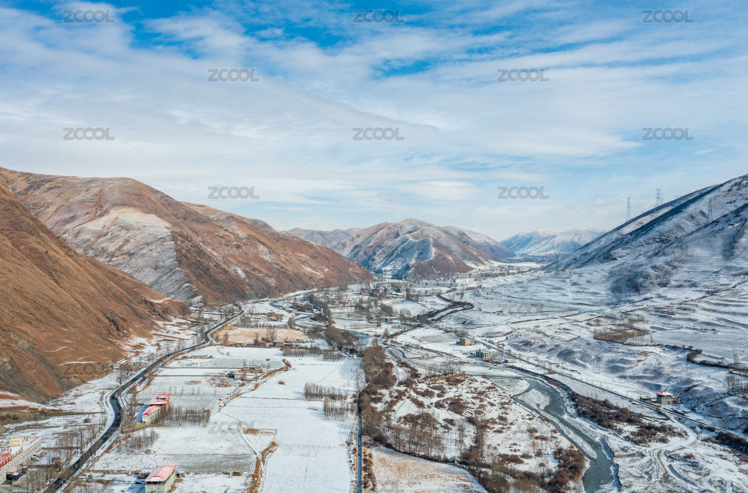 蓝天白云,雪后风景,自然,山峦,旅游目的地,雪景,航拍,日喀则,中国
