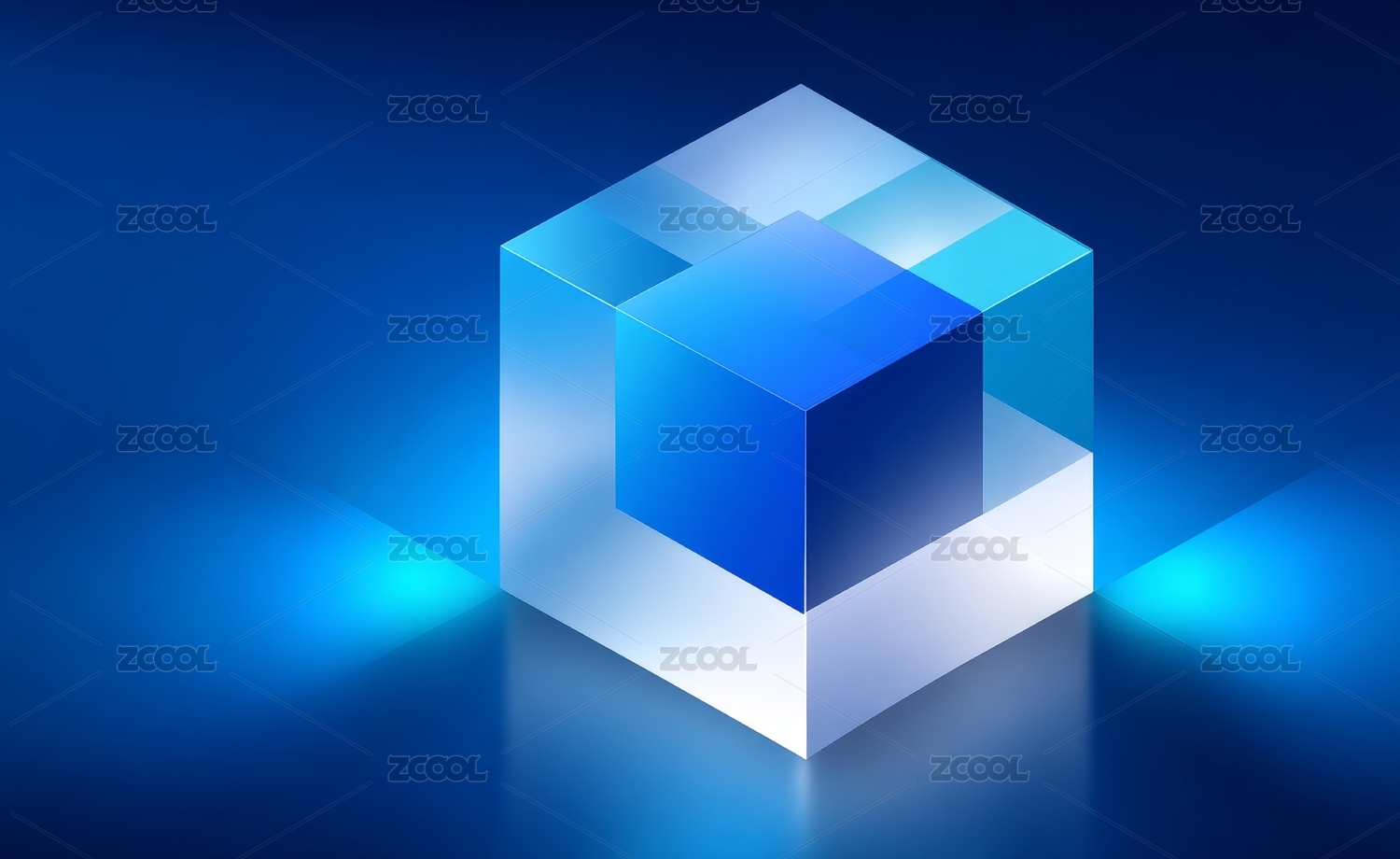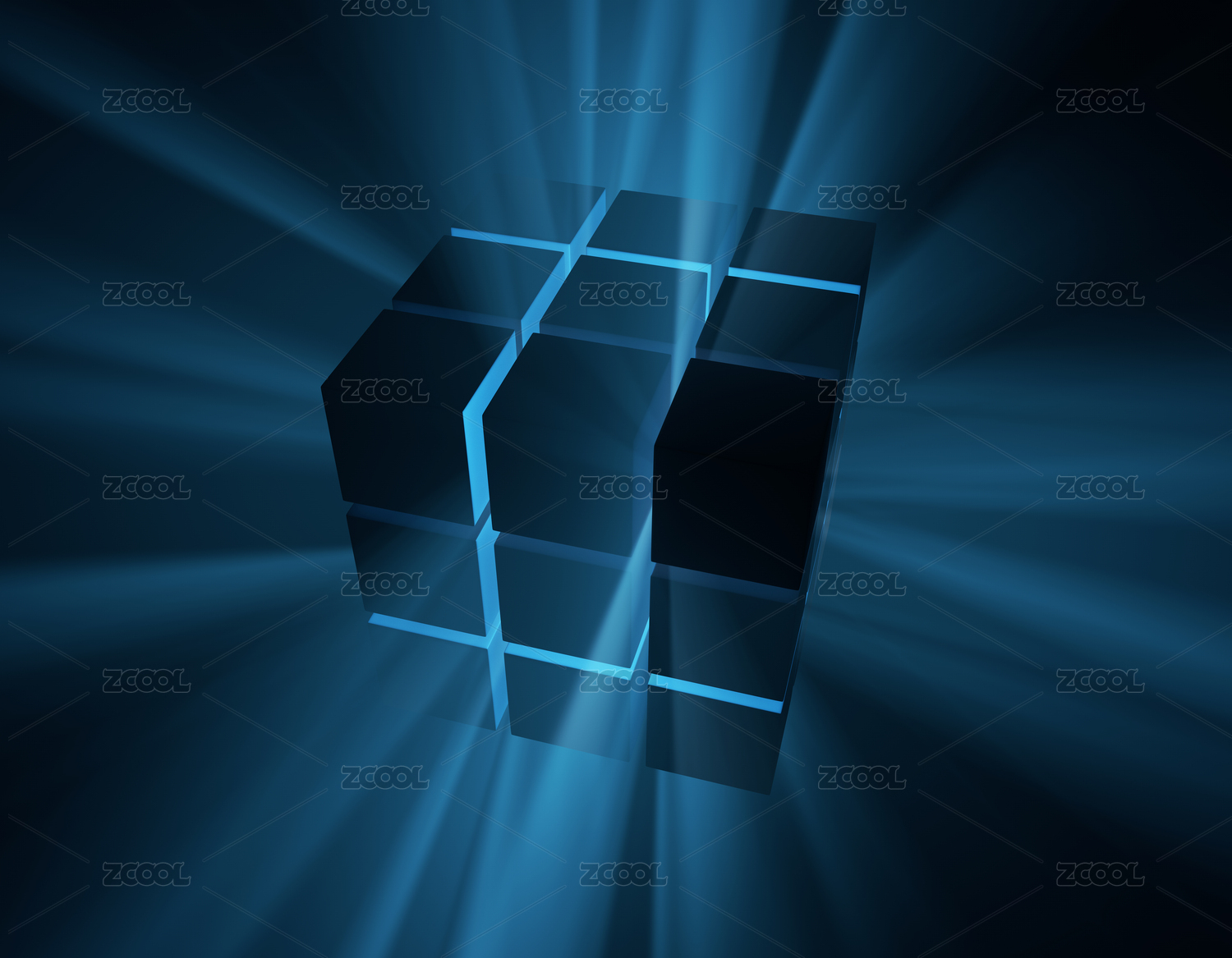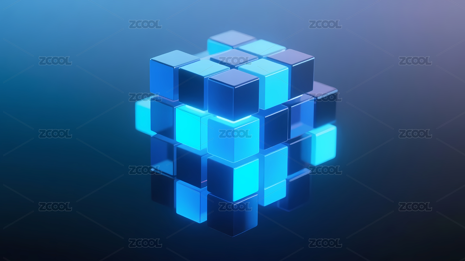蓝色发光立方体科技感