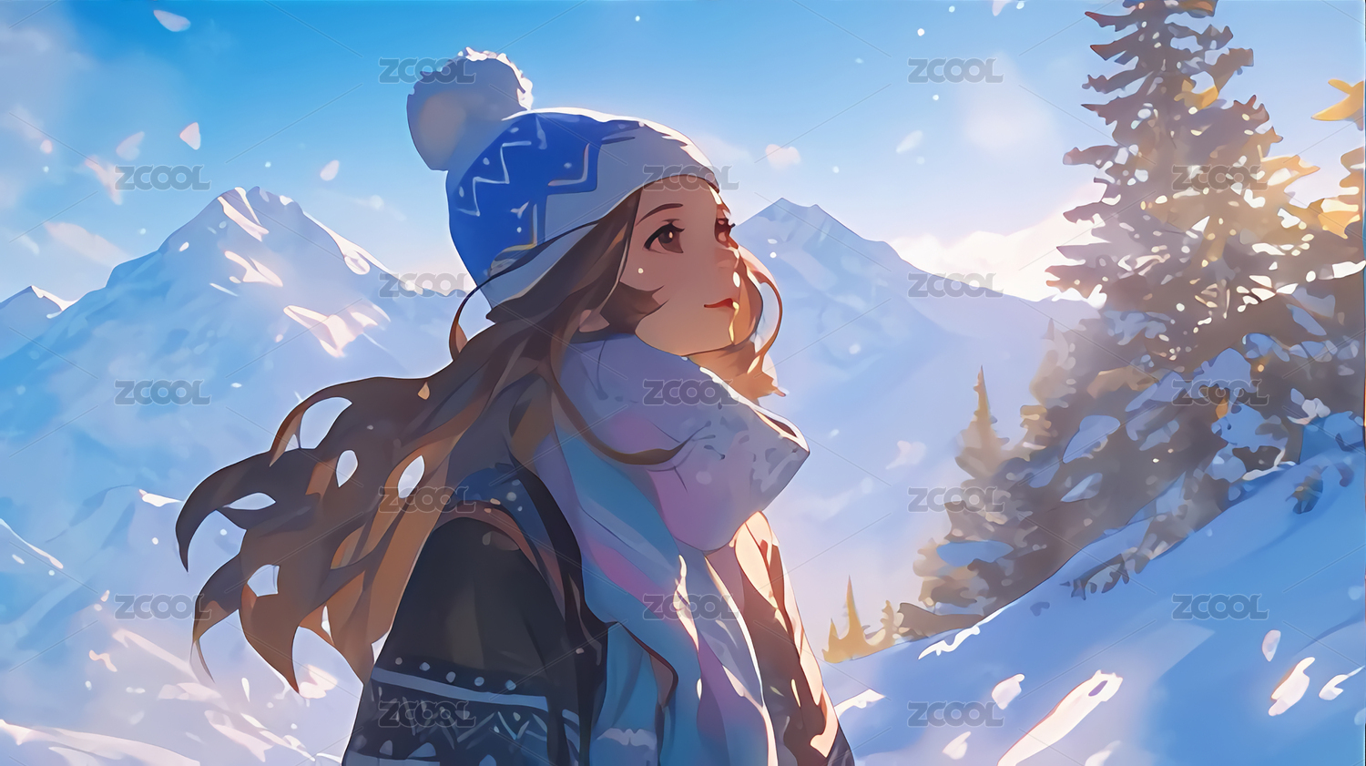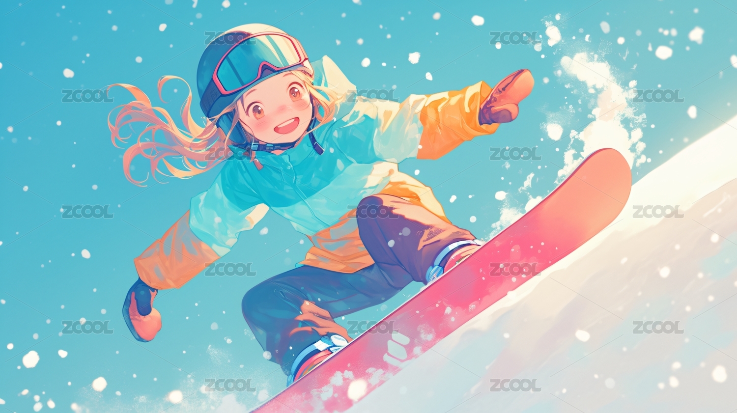滑雪运动新海诚日漫风格插画