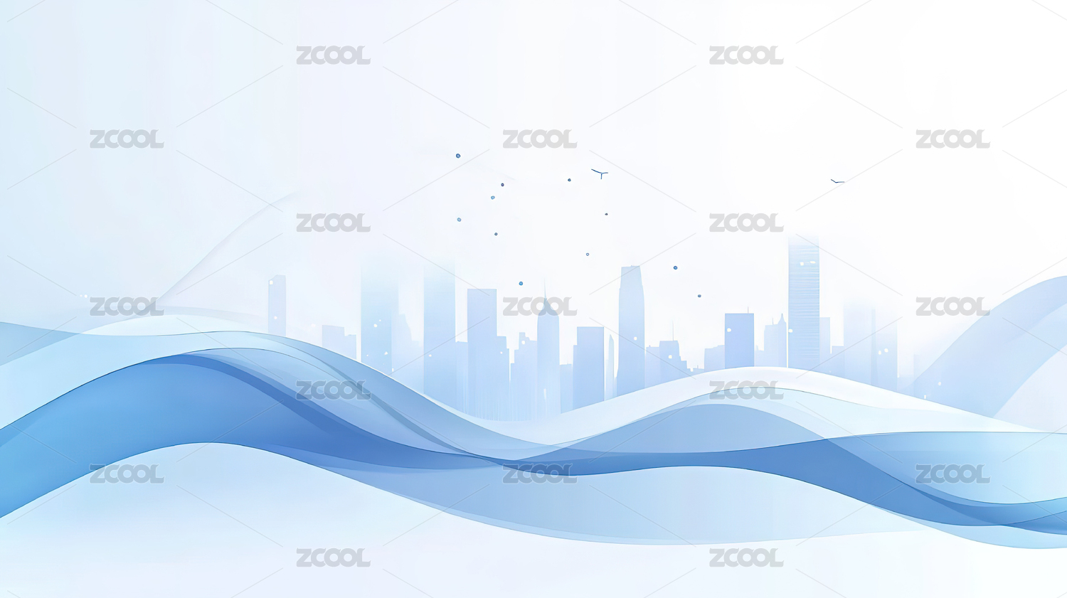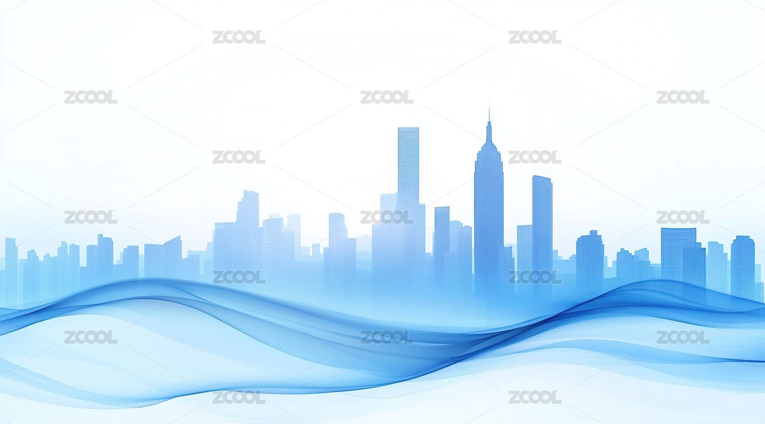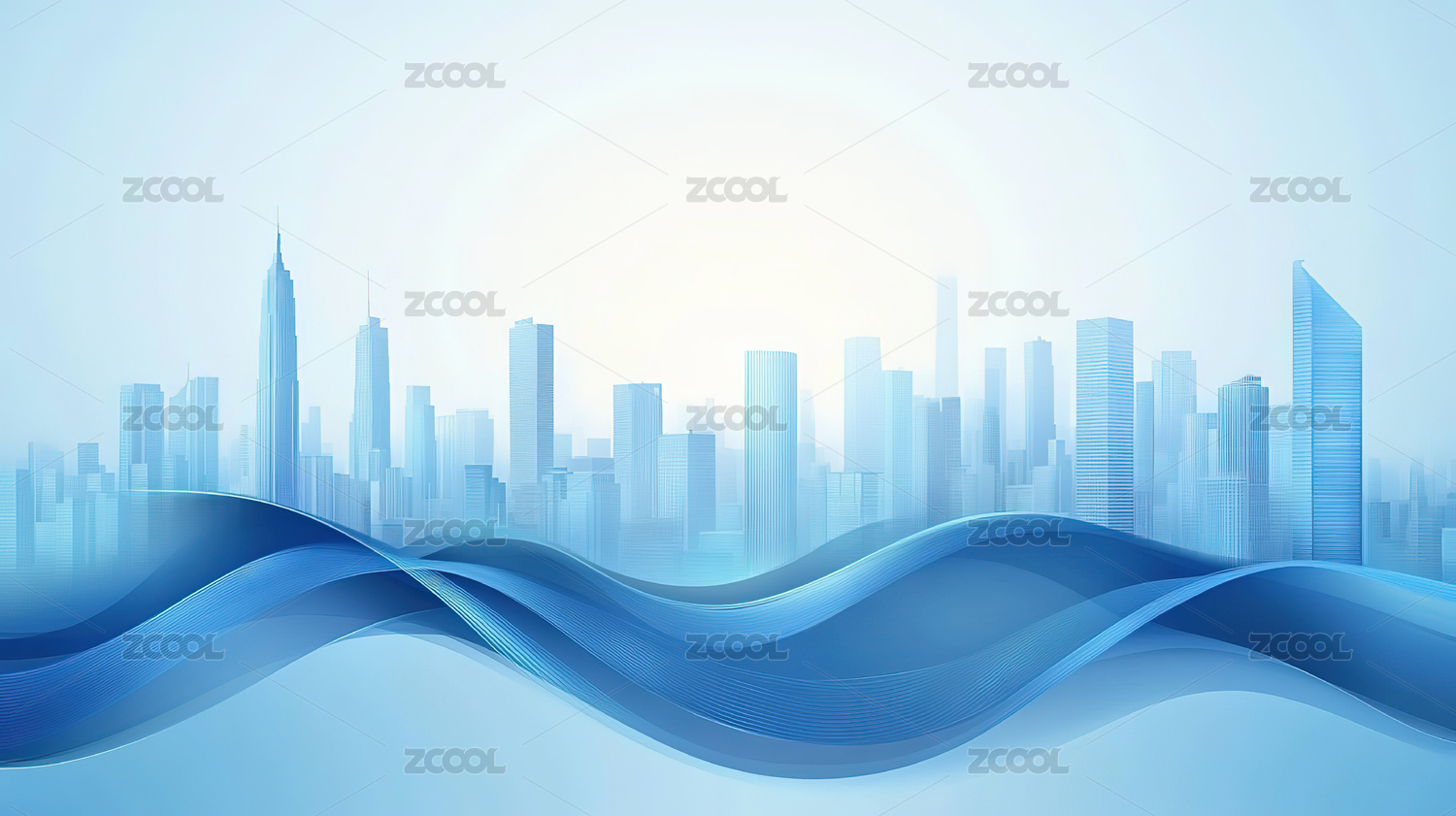流畅的蓝色渐变波浪线条玻璃城市建筑
