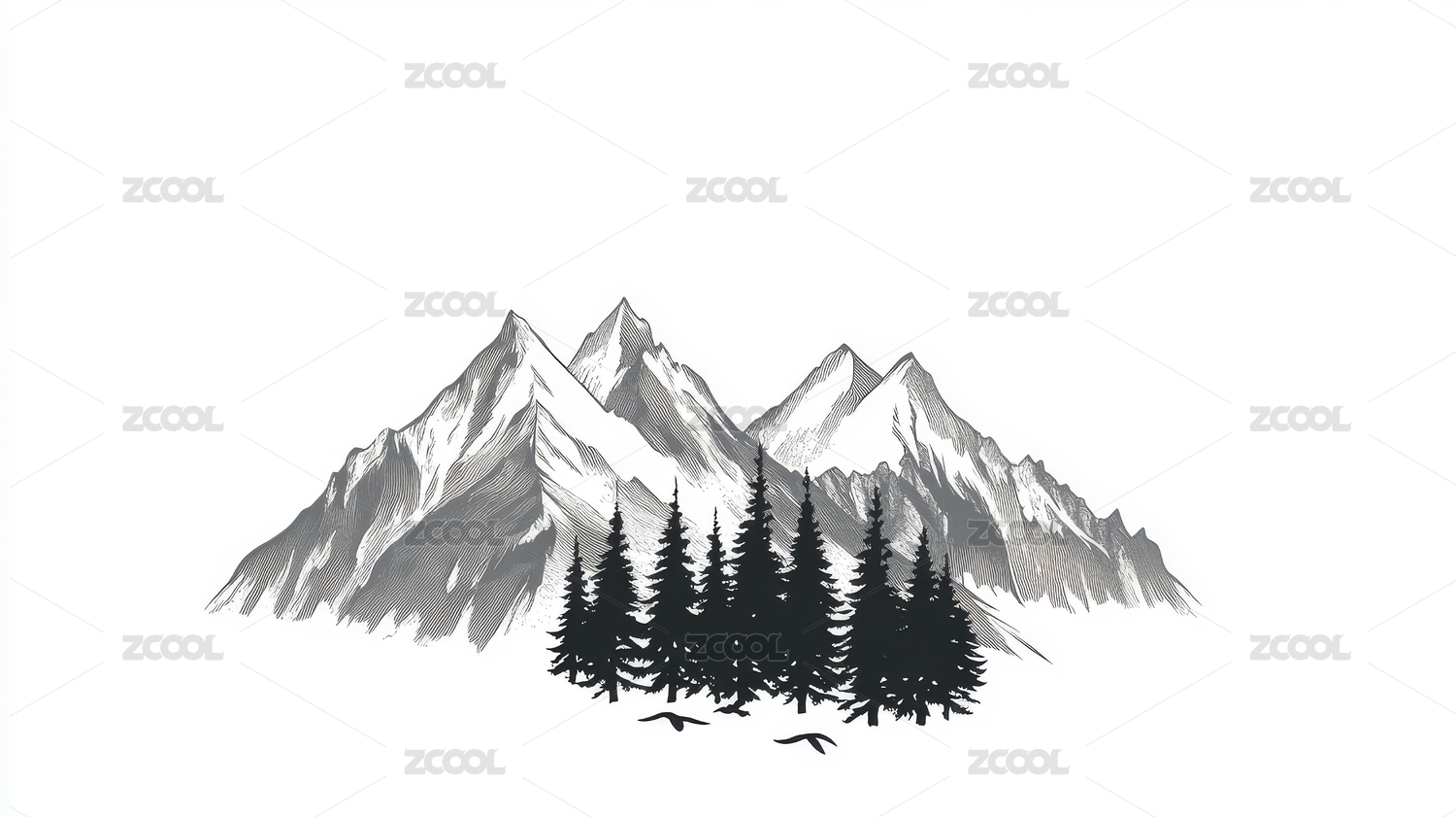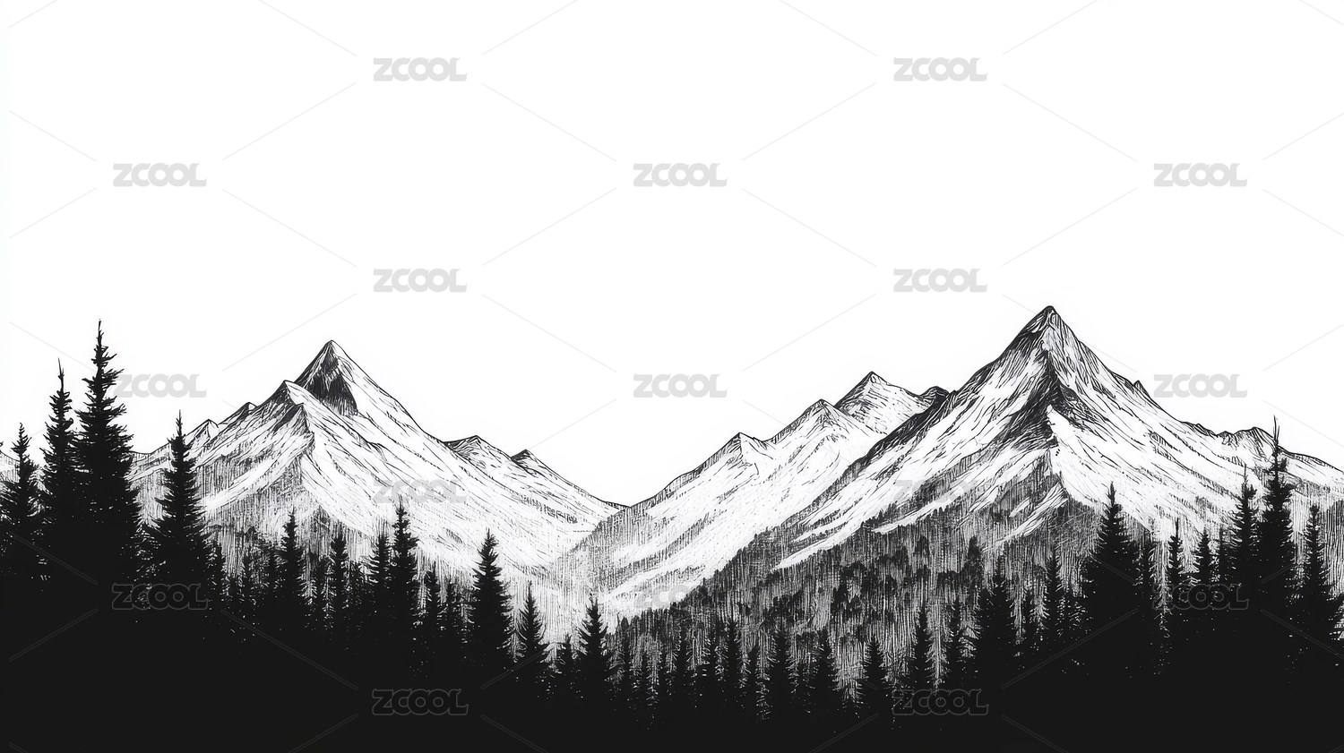 黑白山脉剪影风景艺术