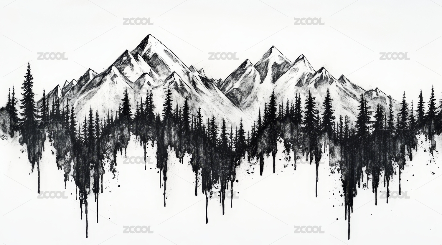 水墨风格山峰森林景色