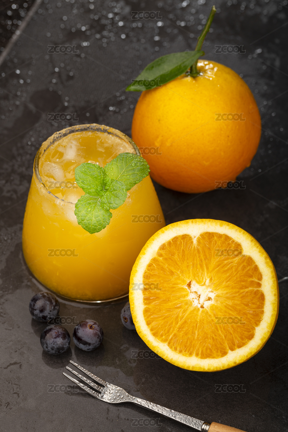新鲜可口的橙子和美味的橙汁
