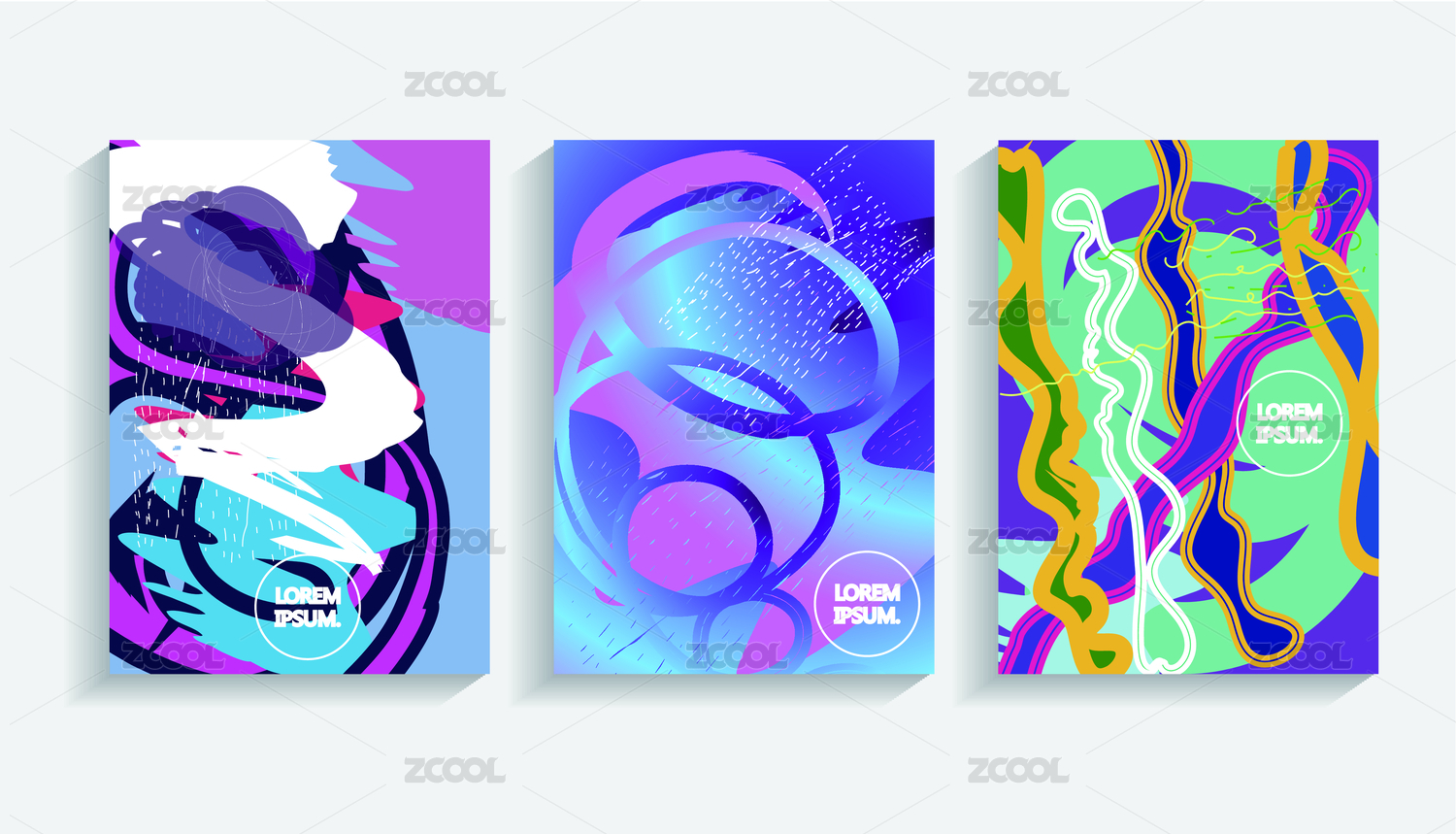 矢量彩色抽象雪花笔刷肌理组合卡片封面