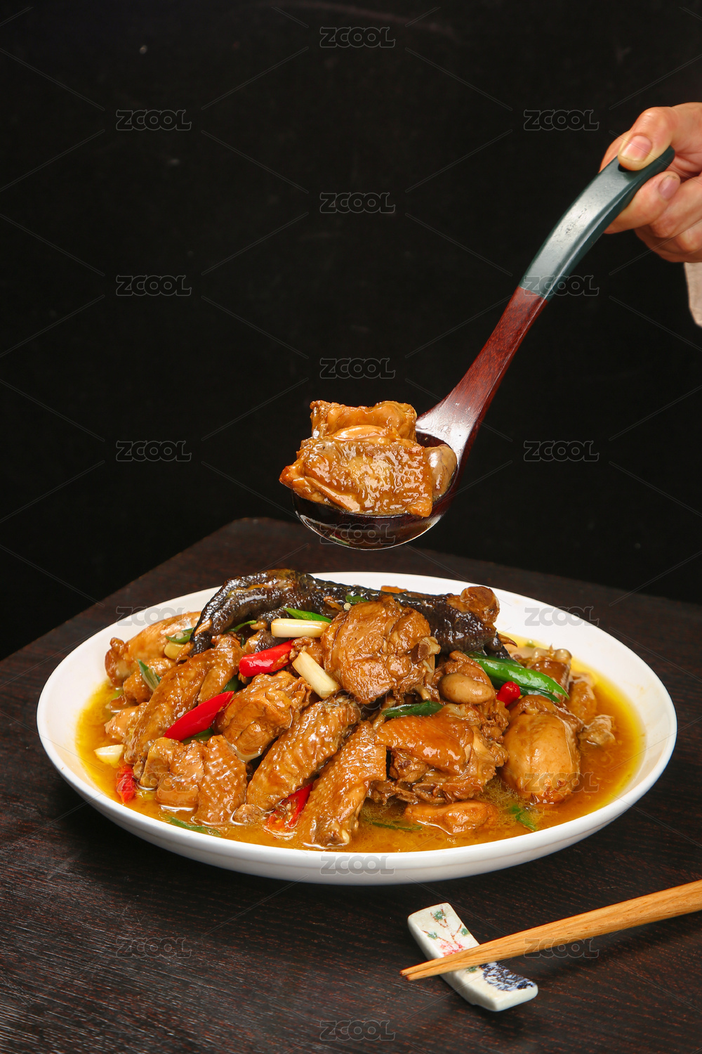 辣炒鸡块,小碗菜,湖南菜,暗色调,木纹桌面,HENP202101